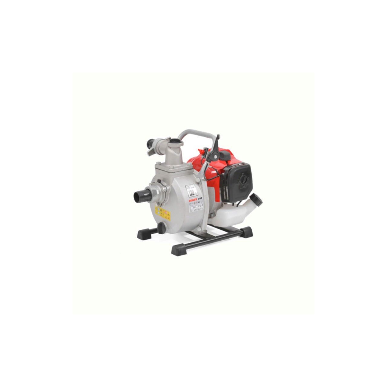 Hecht 343 Motopompa cu motor pe benzina in 2 timpi cu un volum de 43 cm³ si o putere de 2 CP. Este adecvata pentru utilizarea in zone in care energia electrica nu este disponibila. Design-ul se bazeaza pe pompele conventionale de suprafata, prin urmare, este necesar sa se pompeze inainte de utilizare, diluat cu apa.