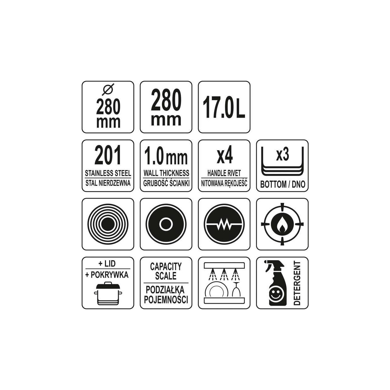 Oală cu capac 28 x 28 cm, 17 l Yato YG-00013 - Informații despre acest produs: