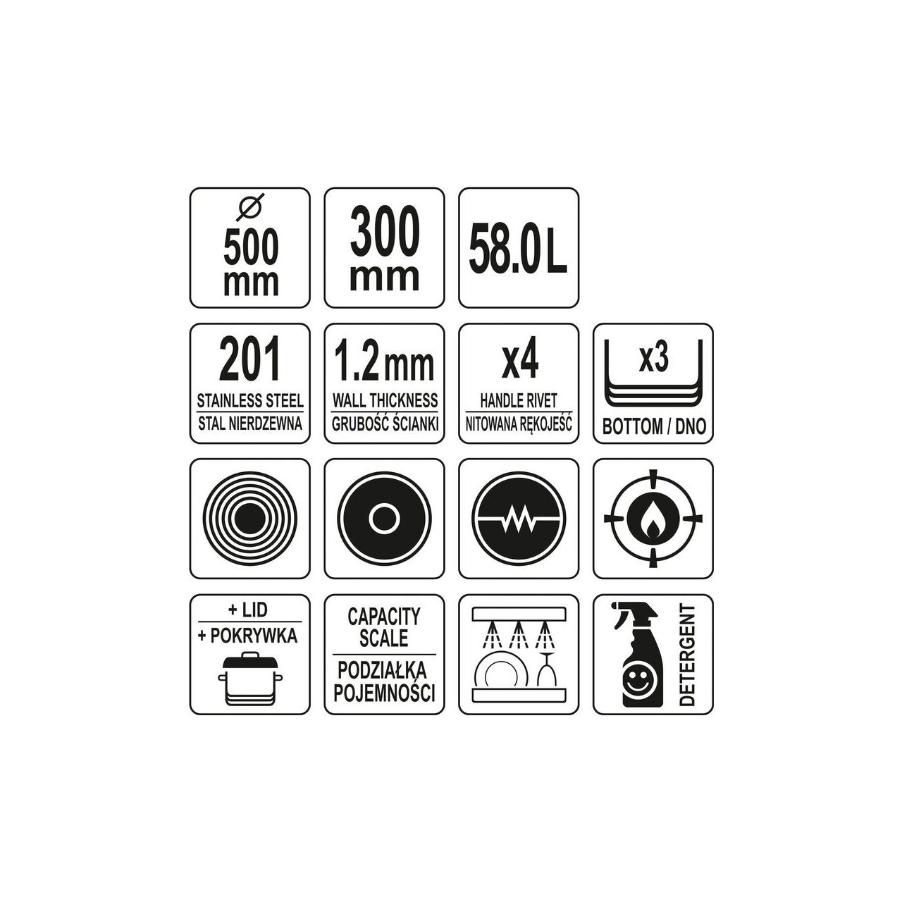 Oală cu capac 50 x 30 cm, 58 l Yato YG-00052 - Informații despre acest produs: