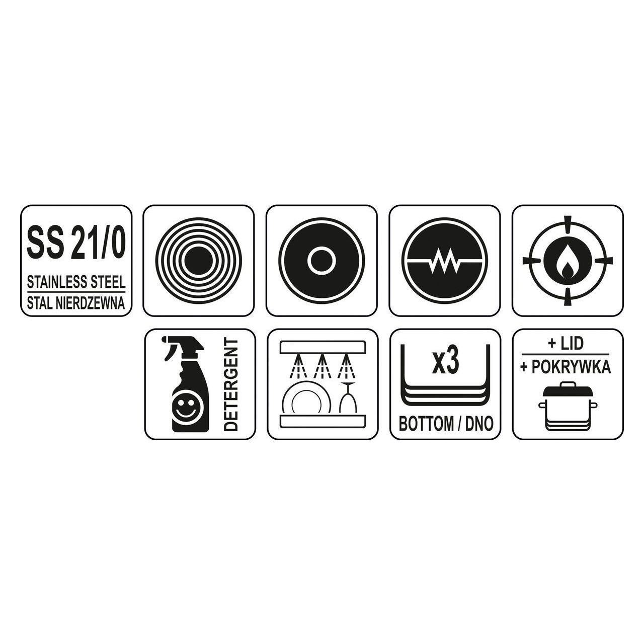 Este fabricat din oțel inoxidabil 21/0 de înaltă calitate , special dezvoltat pentru utilizare în gastronomie. Cel mai important avantaj al tigăilor din acest tip de oțel este conducerea căldurii cu până la 30% mai mare decât în tigăile standard din oțel 304. Acestea se caracterizează și prin rezistență crescută la deteriorarea mecanică și acțiunea acizilor organici și a detergenților. De aceea, acestea sunt sigure pentru mașina de spălat vase și rezistente la spălarea intensivă a suprafeței.