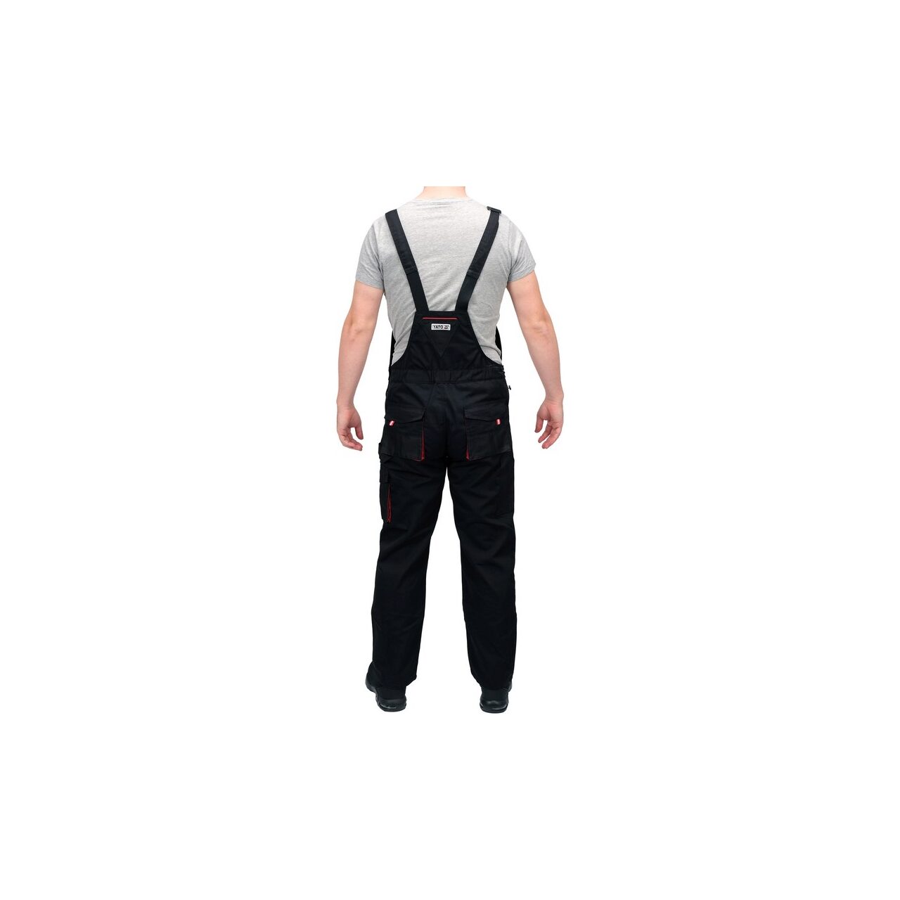 Caracteristici produsPantaloni de lucru cu bretele YT-8031 cu unsprezece buzunare, inclusiv 7 cu închidere cu velcro și buzunare speciale pentru genunchiere. Țesătura principală este un amestec de bumbac și poliester în proporțiile potrivite. Această soluție vă permite să utilizați punctele forte ale ambelor materiale, inclusiv retenție bună de căldură și rezistență sporită la rupere. Cusăturile triple sunt utilizate pentru a conecta materialul în zonele cele mai expuse la rupere :