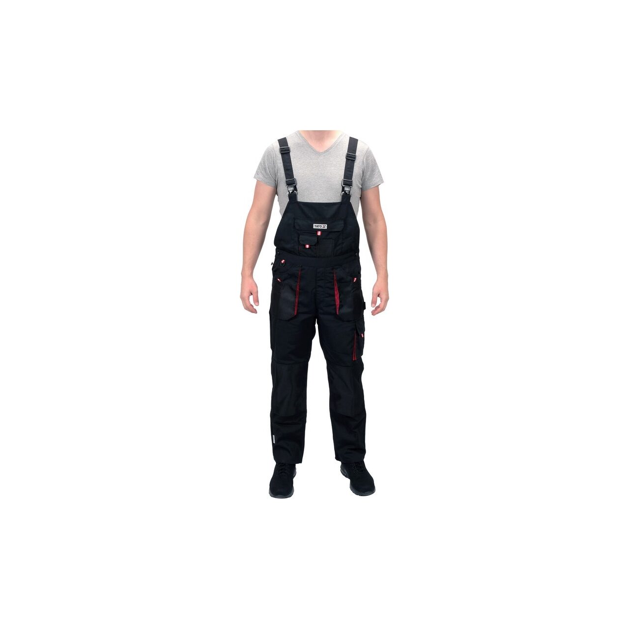 Caracteristici produsPantaloni de lucru cu bretele YT-8033 cu unsprezece buzunare, inclusiv 7 cu închidere cu velcro și buzunare speciale pentru genunchiere. Țesătura principală este un amestec de bumbac și poliester în proporțiile potrivite. Această soluție vă permite să utilizați punctele forte ale ambelor materiale, inclusiv retenție bună de căldură și rezistență sporită la rupere. Cusăturile triple sunt utilizate pentru a conecta materialul în zonele cele mai expuse la rupere :