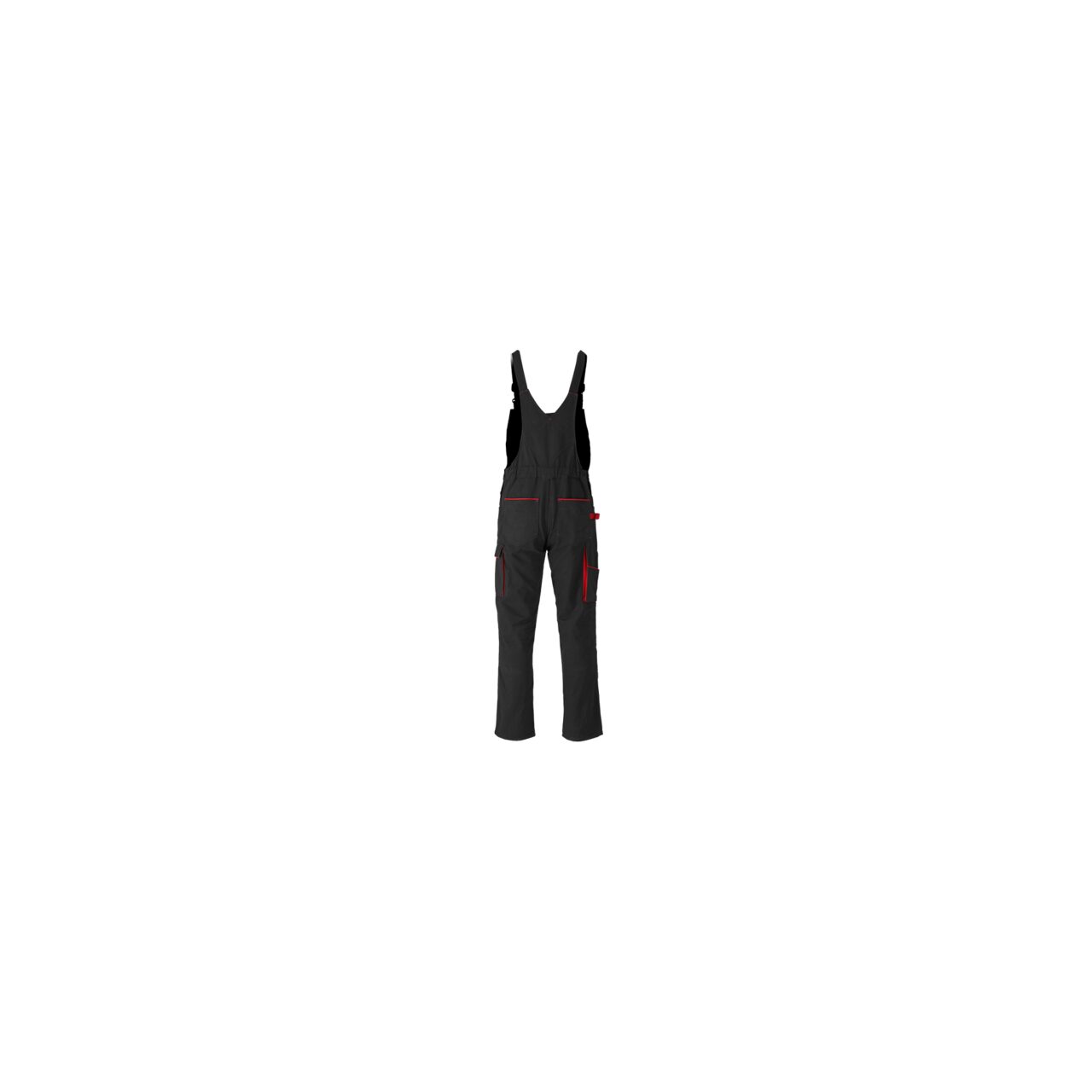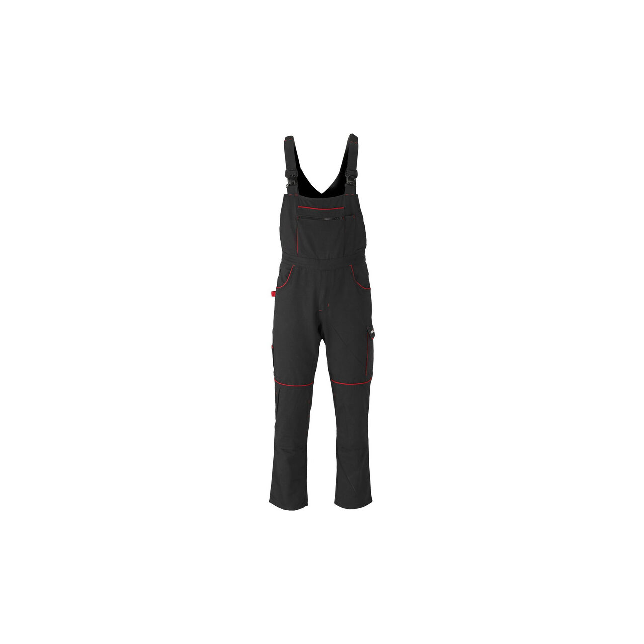 Nouă buzunare, inclusiv un buzunar mare la piept cu fermoar și buclă pentru ciocan, te vor ajuta să rămâi organizat. Bretele de umăr reglabile din material textil cu bandă elastică la spate. Nasturi pe laterale cu reglare a lățimii taliei și bandă elastică cusută la spate. Buzunare pentru genunchiere cu închidere cu velcro. Pantaloni de culoare închisă cu linii roșii care, pe lângă funcția lor decorativă, întăresc și protejează marginile buzunarelor deschise de rupere.