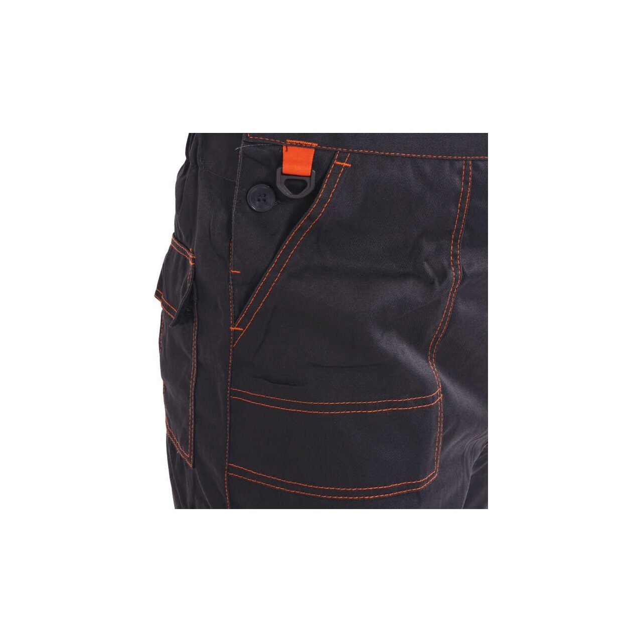 - sub talie, în față, două buzunare principale cu partea inferioară întărită, cu un strat suplimentar de material în interior