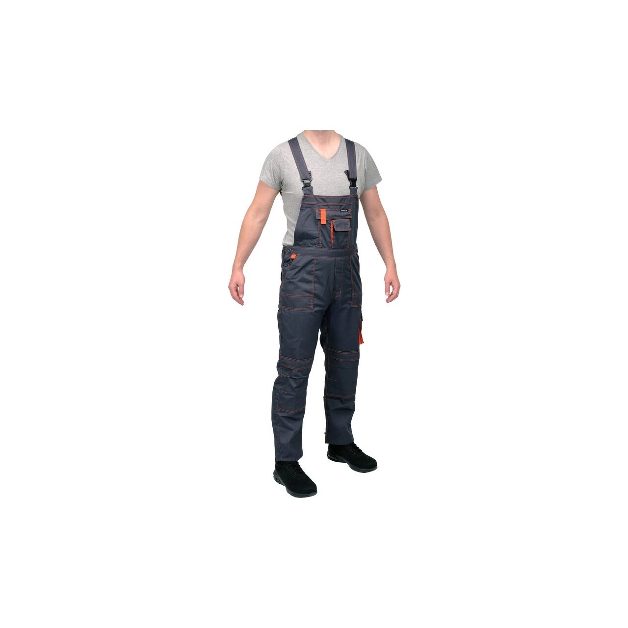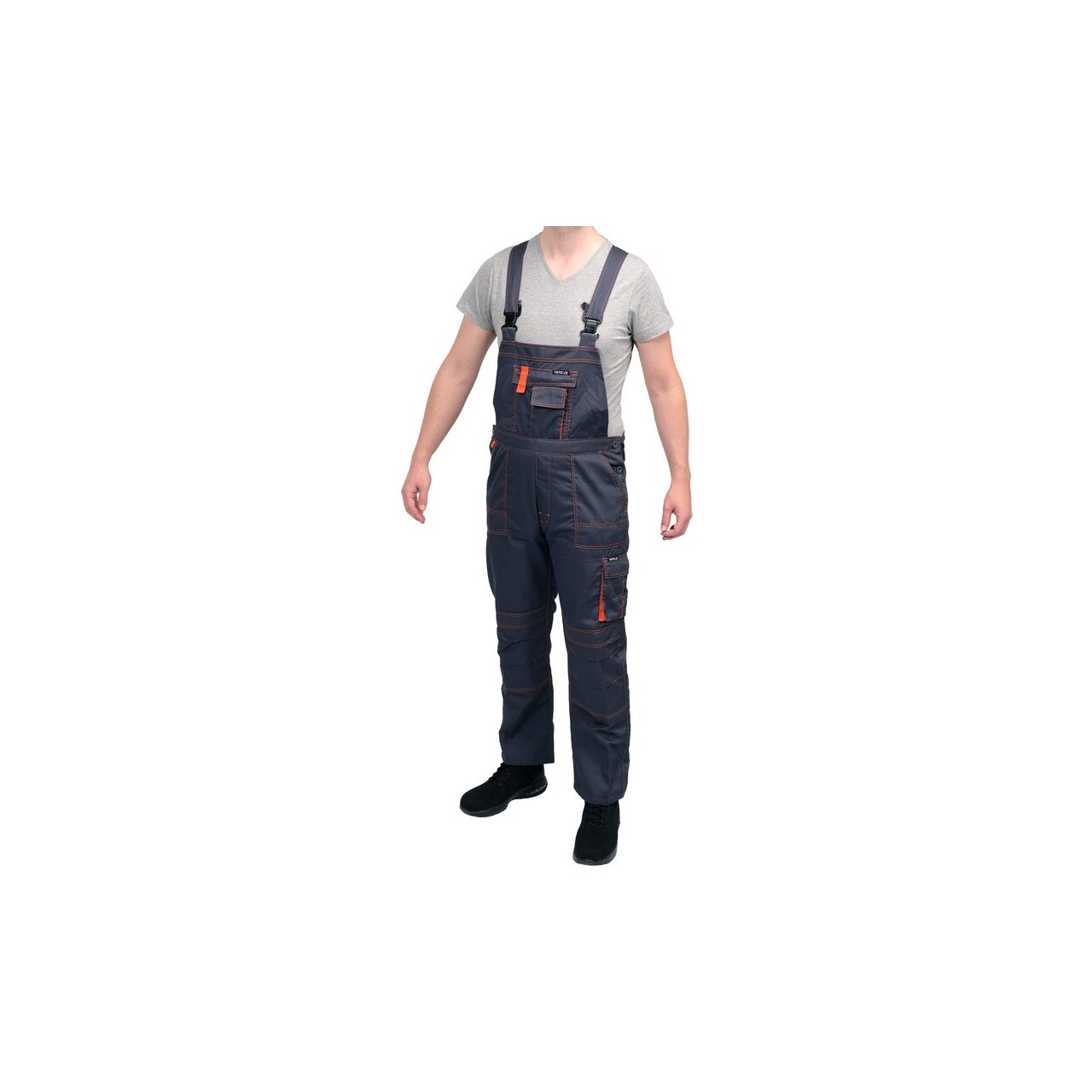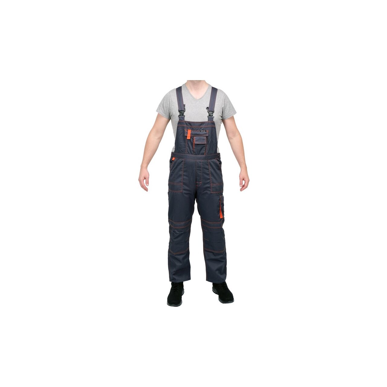 Caracteristici produsPantaloni de lucru cu bretele YT-80410 cu șapte buzunare, inclusiv 4 cu închidere cu velcro și buzunare speciale pentru genunchiere. Țesătura principală este un amestec de bumbac și poliester în proporțiile potrivite. Această soluție vă permite să utilizați punctele forte ale ambelor materiale, inclusiv retenție bună de căldură și rezistență crescută la rupere: