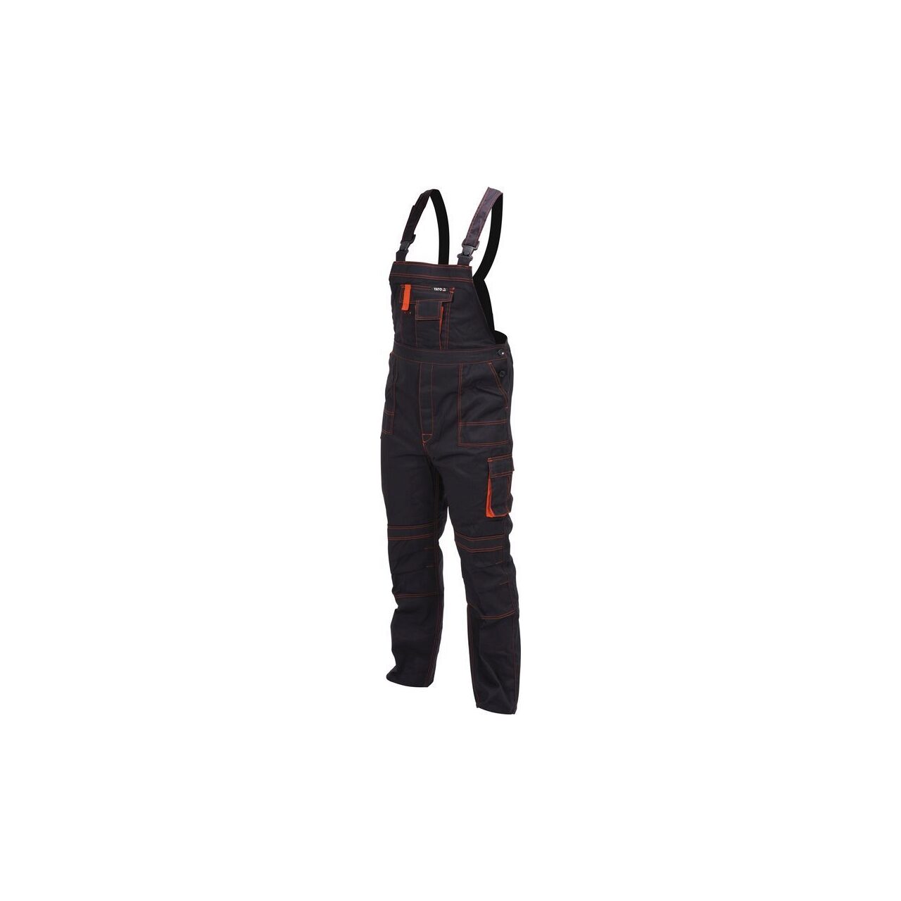 Caracteristici produsPantaloni de lucru cu bretele YT-80409 cu șapte buzunare, inclusiv 4 cu închidere cu velcro și buzunare speciale pentru genunchiere. Țesătura principală este un amestec de bumbac și poliester în proporțiile potrivite. Această soluție vă permite să utilizați punctele forte ale ambelor materiale, inclusiv retenție bună de căldură și rezistență crescută la rupere: