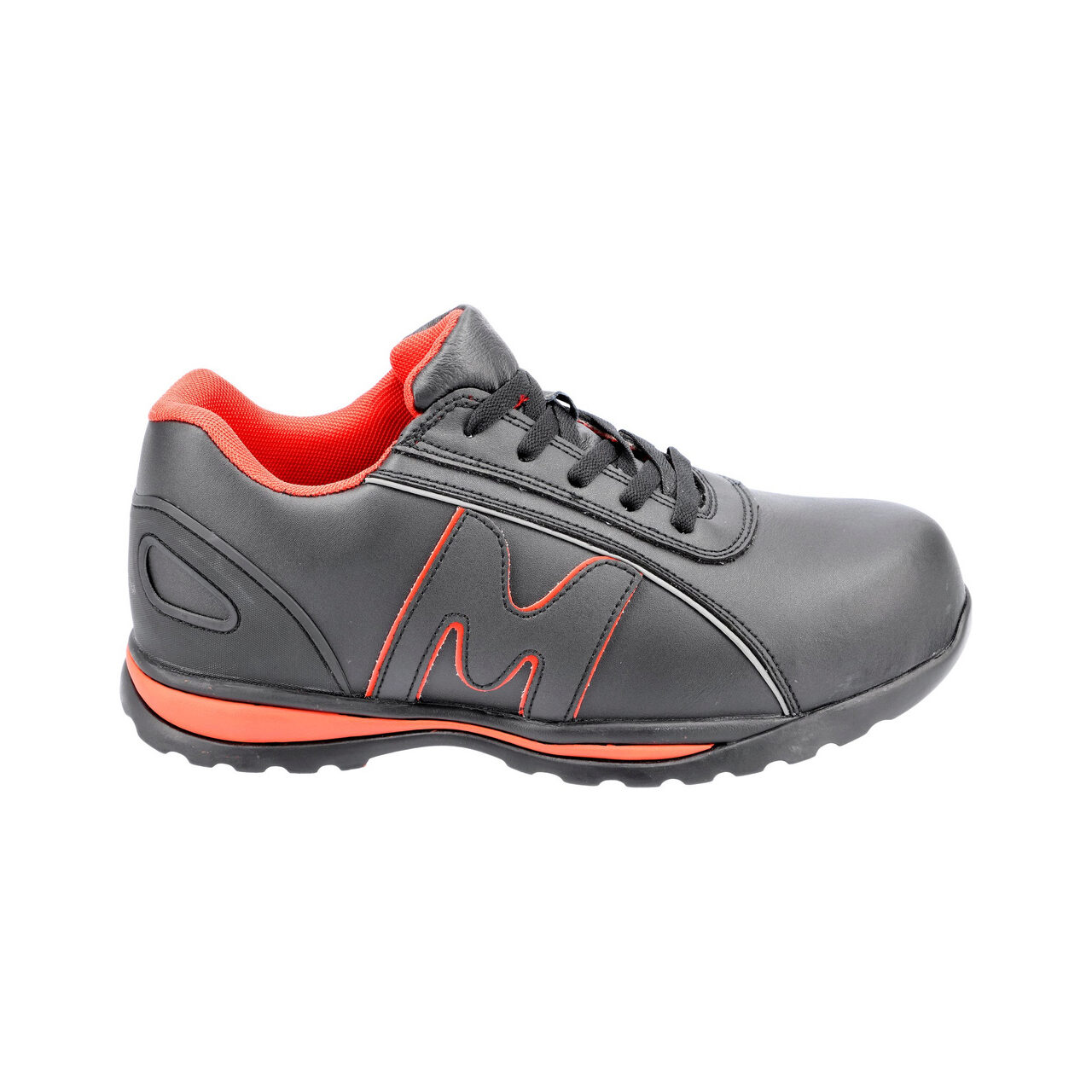 Pantofii nu conțin metal. Atât inserția anti-perforare, cât și talpa de cauciuc sunt flexibile și – spre deosebire de încălțămintea cu talpă tradițională din PU și inserție de oțel – nu restricționează flexia metatarsiană. Partea superioară din piele naturală este decorată cu linii reflectorizante pentru a îmbunătăți vizibilitatea utilizatorului.