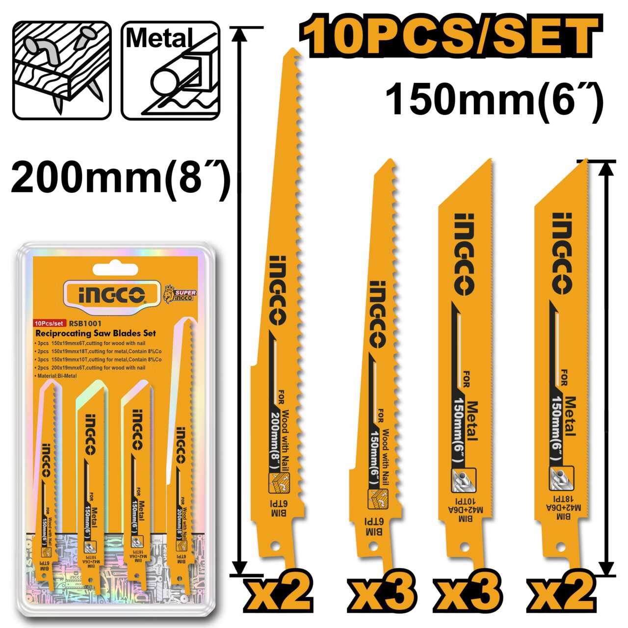 Panza fierastrau sabie metal lemn set 10 bucati (nou), pentru taierea lemnului si metalului - Ingco RSB1001 - Informații despre acest produs: