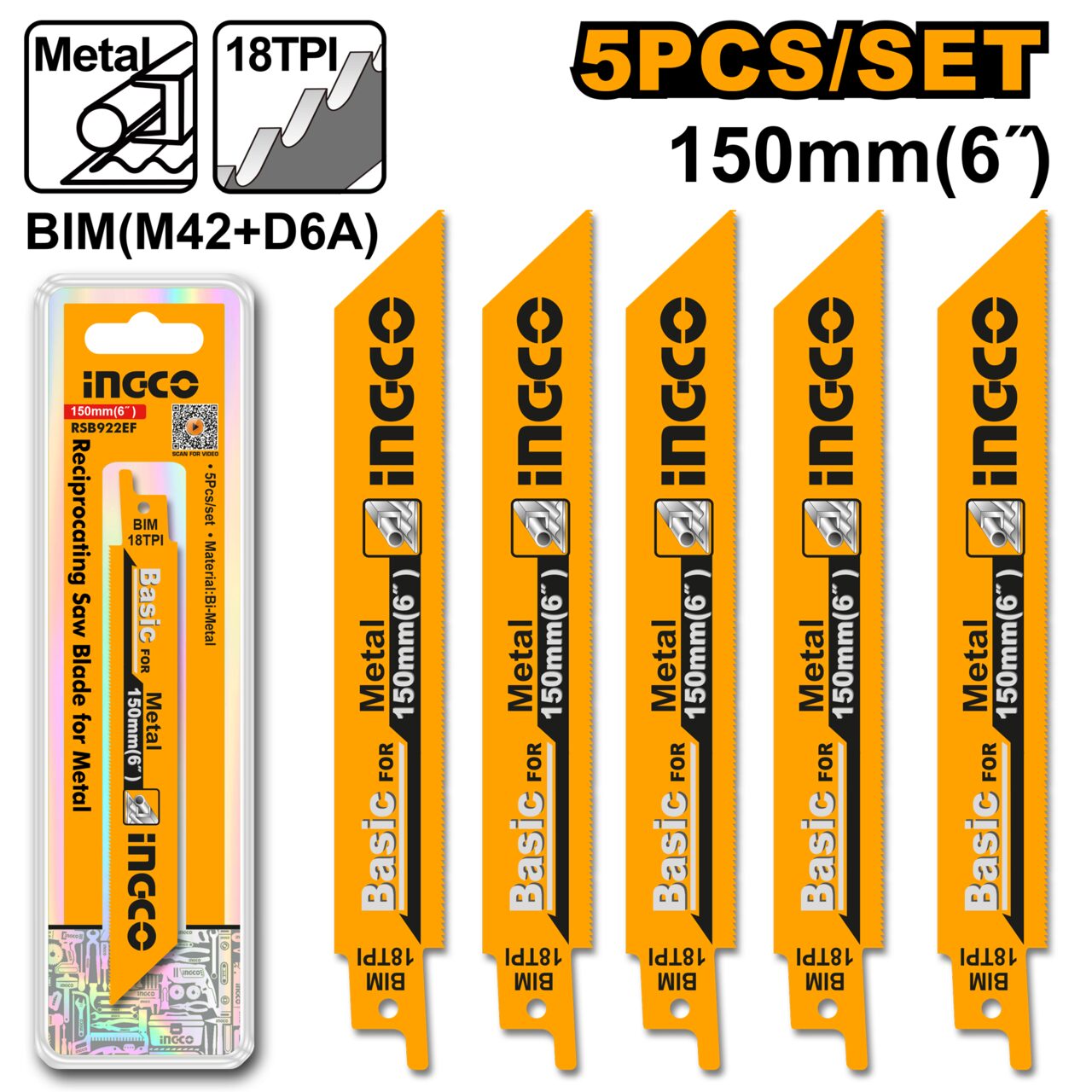 Utilizați pentru metalDimensiuni 150 mmSet 5 buc 18T-BIM-MilledPotrivit pentru fierăstrău alternativAmbalare blister