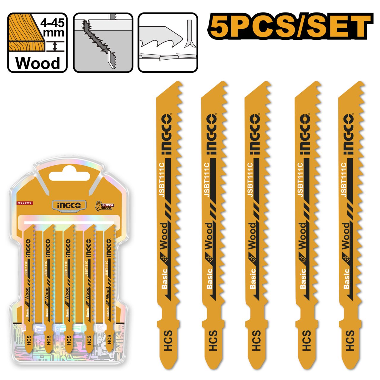 Panze pendular lemn set 5 bucati - Ingco JSBT111C - Informații despre acest produs: