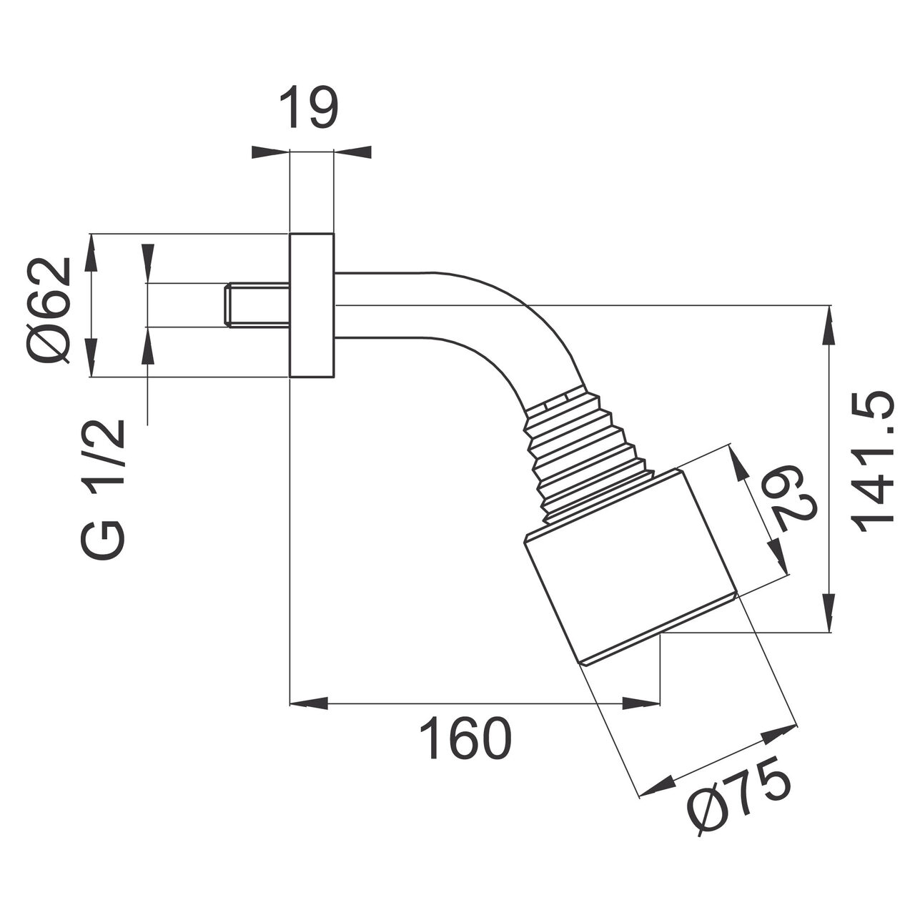 - Lungime pară de duș: 62 mm