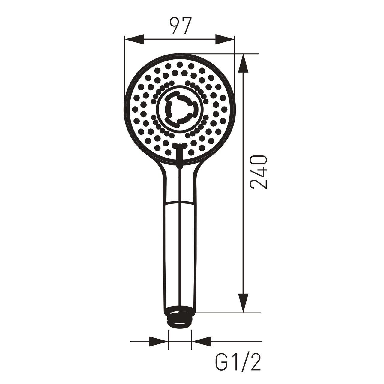 Pară de duș are lungime de 240 mm, iar apărătoarea are 97 mm, asigurând o distribuție confortabilă a apei pe suprafața de ieșire.