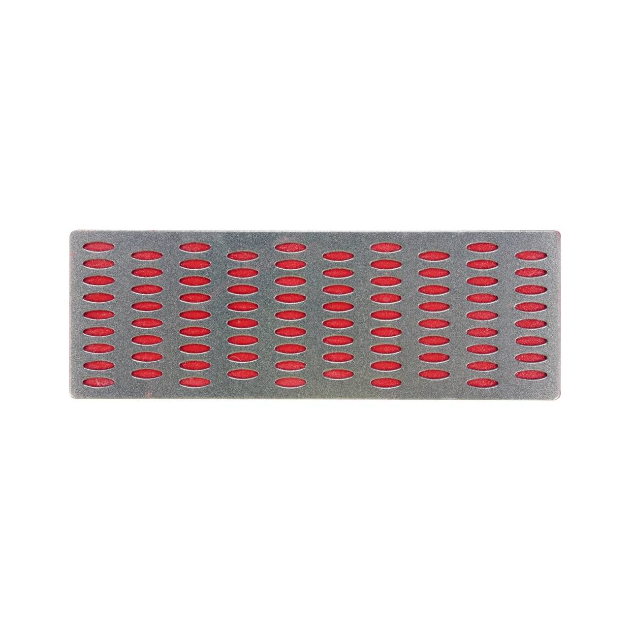 Piatra abraziva diamantata cu o granulatie de 300. Construcție - terasament cu diamant pe o foaie de oțel perforat. Dimensiuni 150 x 50 x 4 mm.