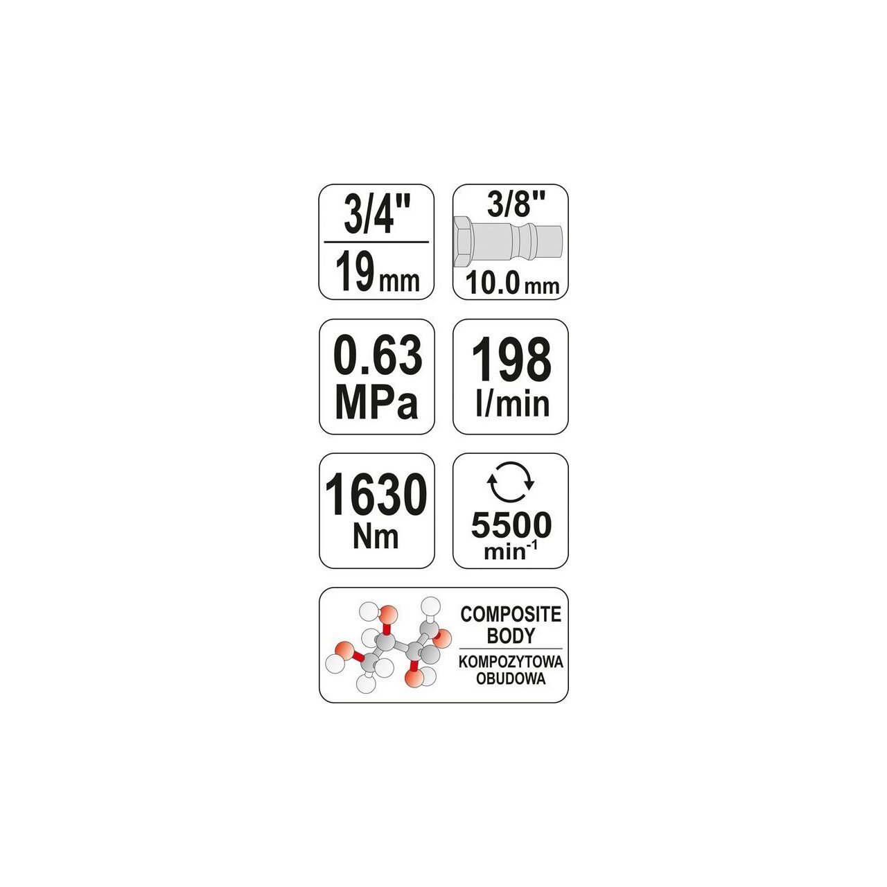 Pistol pneumatic 3/4", 1630 Nm Yato YT-09571 - Informații despre acest produs: