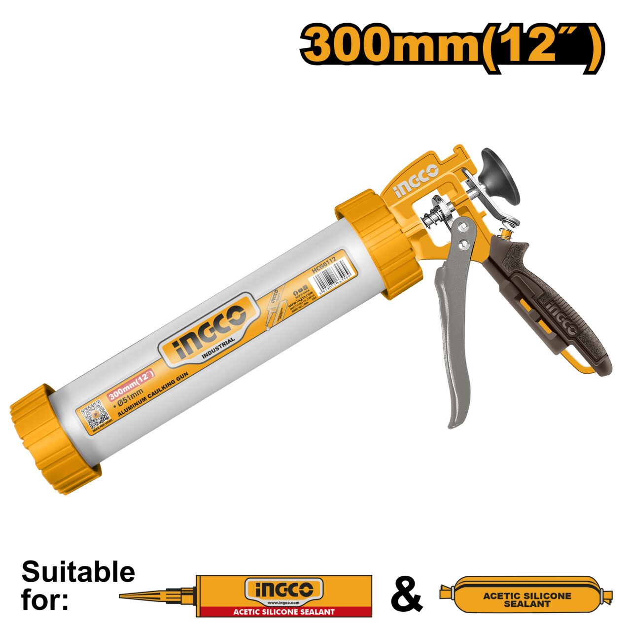 Pistol silicon 12'' aluminiu - Ingco HCG0112 - Informații despre acest produs: