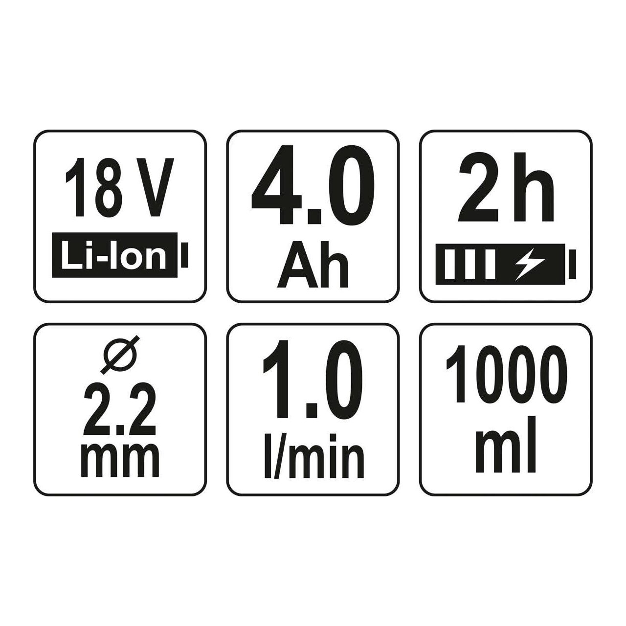 Pistol vopsit cu acum. 18V 4,0AH 1L/min, Yato YT-82765 - Informații despre acest produs: