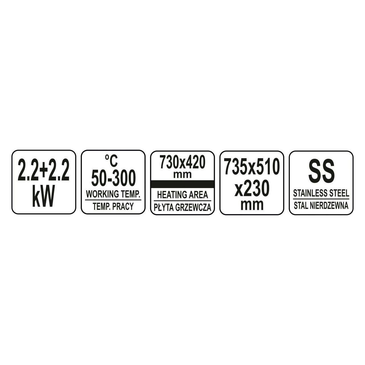 placă de grătar cu o capacitate de 2,2 kW + 2,2 kW YATO marca YG-04588.