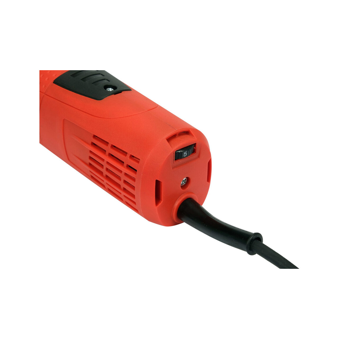 Dispozitivul este echipat cu o cutie de viteze ranforsată și un sistem de pornire lină care asigură o durată de viață mai lungă a motorului. Motorul puternic cu înfășurări din cupru este acoperit cu rășină pentru a-l proteja împotriva deteriorării. Mânerul auxiliar cu trei poziții se înșurubează din părțile laterale sau din partea superioară a capacului cutiei de viteze. Râșnița este ușor de utilizat datorită unui cablu de cauciuc lung de 3 metri. Întrerupătorul lateral este practic, durabil și vă permite să porniți cu ușurință râșnița chiar și atunci când purtați mănuși de lucru. Diametrul exterior al carcasei este subțire, ceea ce permite o prindere sigură și fermă și ghidarea lamei de-a lungul liniei de tăiere. Sistemul de schimbare rapidă a periilor permite înlocuirea fără a dezasambla întregul dispozitiv.
