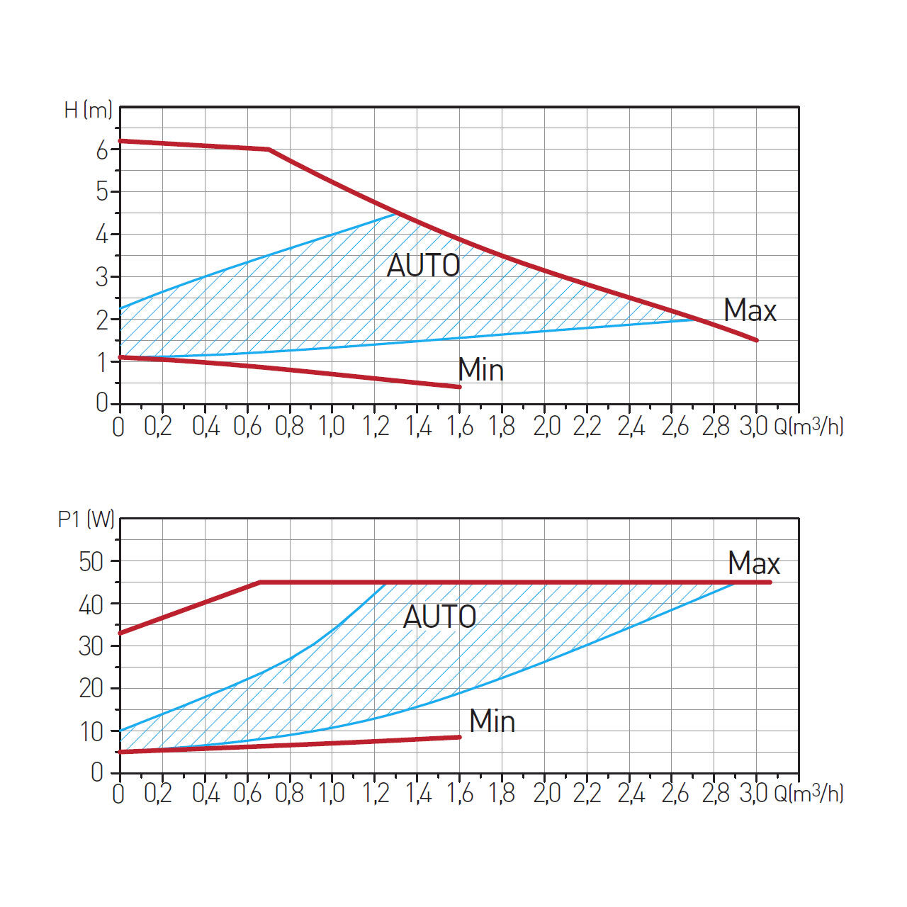 Potrivită pentru circuite termice rezidențiale sau comerciale, pompa asigură o circulație stabilă a agentului termic între +2 și +110 °C, inclusiv amestecuri de 30% glicol apă. Controlul AUTO MIN-MAX reglabil în mod fără sfârșit permite adaptarea debitului și a înălțimii de ridicare în funcție de necesar, limitând consumul între 5 și 45 W. Construcția cu IEE ≤0,23 pentru funcționare eficientă și stabilă contribuie la optimizarea energetică a sistemului. Pompa funcționează la ~230 V, 50/60 Hz și atinge o înălțime maximă de ridicare de 6,2 m cu o capacitate de până la 3,0 m³/h, susținând circuite cu pierderi de sarcină variabile și distribuție uniformă a temperaturii în instalație.