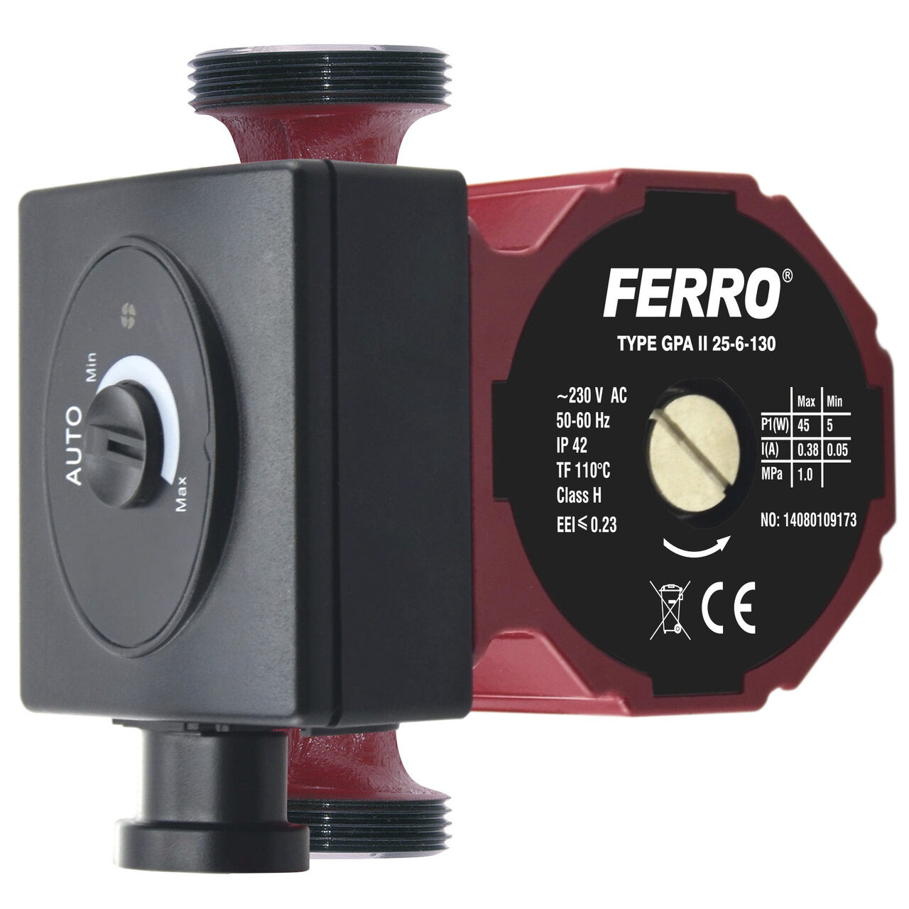 Pompa circulatie electronica Ferro GPA II 25X6X130 pentru instalatii de incalzire, Ferro 0604W