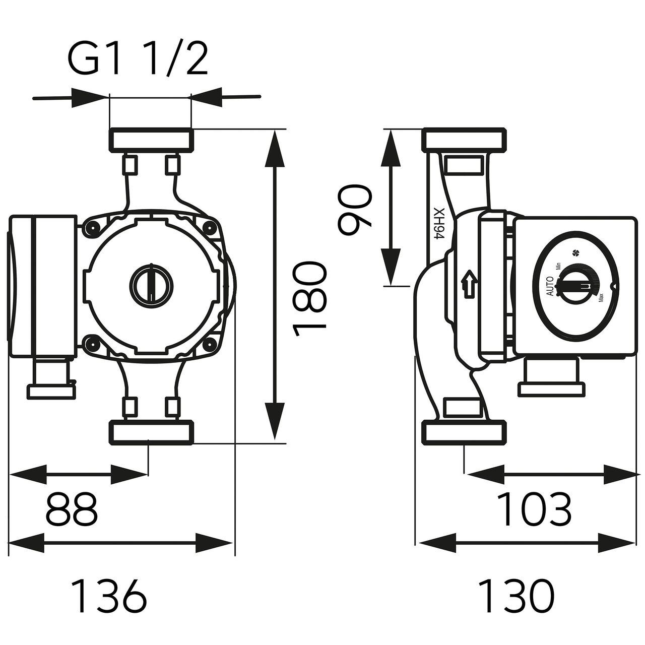 Se montează cu axul central în poziție orizontală, cu presetupa orientată în jos sau lateral, pe racorduri G1 1/2 cu distanța de 180 mm.