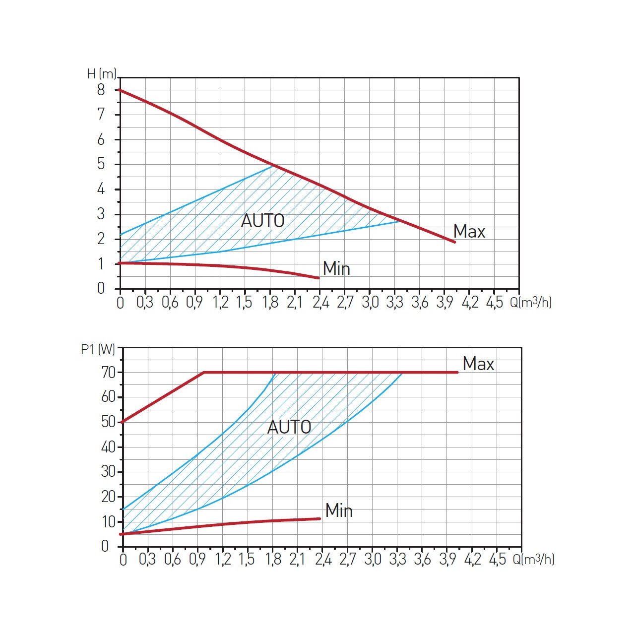 Reglajul automat pe intervalul AUTO MIN-MAX reglabil în mod fără sfârșit adaptează debitul la cerințele circuitului, optimizând consumul între 5 – 70 W. Indice de eficiență energetică ≤ 0,23 sprijină utilizarea economică în aplicații cu lichide termice pe bază de apă. Intervalul de lucru pentru fluid, +2 - +110 °C, permite operarea în instalații în care temperatura variază substanțial. Pompa funcționează la ~230 V, 50/60 Hz, cu toleranță de tensiune -6% – +10%, pentru stabilitate electrică. Înălțimea maximă de ridicare de 8 m și capacitatea de până la 4,0 m³/h acoperă necesarul de circulație în circuite de dimensiuni uzuale, cu atenție la limitele de presiune și la specificul mediului de pompare. Conectarea se face pe racord G1 1/2, iar distanța între racorduri 180 mm facilitează înlocuirea în sisteme existente cu aceeași cotație. Montajul trebuie realizat cu axul central în poziție orizontală, cu presetupa orientată în jos sau lateral, pentru ungere corectă și durabilitate. Clasa de siguranță IP 42 indică protecție adecvată pentru spații interioare, cu temperatură ambiantă 0 - +40 °C, RH <95%. Presiunea maximă de lucru de 10 bar oferă marjă pentru funcționare în instalații presurizate, menținând integritatea ansamblului în regim continuu. Clasa de izolare H contribuie la rezistența termică a înfășurărilor în condițiile de utilizare. Respectarea presiunii minime de intrare asigură alimentarea corectă a rotorului: 0,05 bar până la 85 °C, 0,28 bar până la 90 °C, respectiv 1,00 bar până la 110 °C. Toleranța la tensiune ~230 V (-6% – +10%) și compatibilitatea 50/60 Hz susțin pornirea fiabilă în rețele diferite. Presiunea maximă de lucru 10 bar și înălțimea de ridicare 8 m permit dimensionarea simplă a circuitelor pe etaje reduse. Debitul maxim de 4,0 m³/h acoperă circuite cu pierderi moderate, iar clasa A din denumire reflectă orientarea către eficiență energetică împreună cu IEE ≤0,23. Se recomandă utilizarea exclusivă cu lichide curate, corespunzătoare specificațiilor. Mediul de lucru acceptat este amestec apă cu glicol 30%, adecvat aplicațiilor ce necesită protecție la îngheț, cu temperaturi ale fluidului între +2 și +110 °C. Consum electric 5 – 70 W și curent de 0,05 – 0,52 A susțin exploatarea eficientă în regim variabil. Pachetul include ambalaj cu cod de bare pentru vânzarea cu amănuntul, facilitând identificarea rapidă la recepție. Pentru durată de viață optimă, se respectă orientarea presetupelor, condițiile de mediu și limitele de presiune. Integrarea în sisteme existente este favorizată de conexiunea G1 1/2 și cota de 180 mm, reducând necesarul de adaptări mecanice.