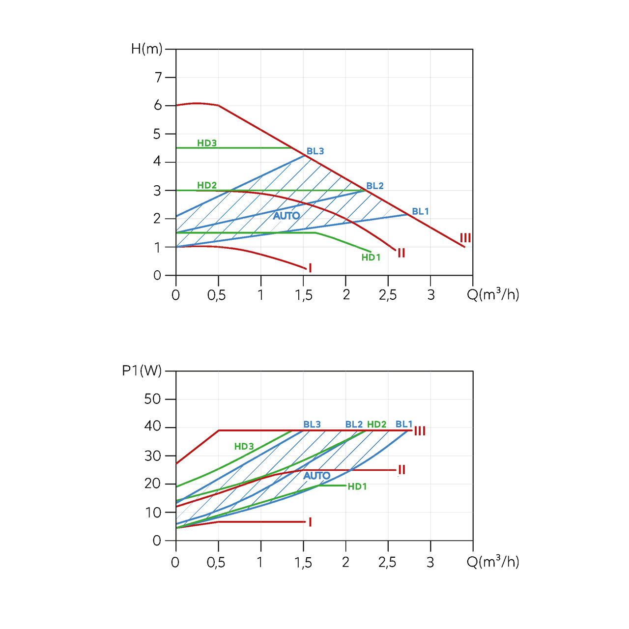 Gestionarea circulației în instalații cu apă sau soluție cu 50% glicol este optimizată prin control electronic cu moduri multiple, oferind reglaj adaptat la cerințele sistemului. Pompa furnizează un debit maxim de 3,8 m³/h și o înălțime de ridicare de 6 m, susținând circuite de încălzire ori răcire cu pierderi variabile de sarcină. Consumul se situează între 5 – 39 W, cu indice de eficiență energetică IEE ≤0,20, pentru funcționare economică. Alimentarea este la 50-60 Hz, ~230V, iar clasa de siguranță IP 44 permite utilizarea în spații tehnice adecvate. Presiunea maximă de lucru de 10 bar acoperă aplicații uzuale din clădiri rezidențiale sau comerciale. Montajul este simplificat de racordul G2 și distanța între racorduri de 180 mm, facilitând integrarea în instalații existente. Pentru o funcționare corectă, unitatea se instalează cu axul în poziție orizontală. Pachetul include 2 garnituri plate și cablu de alimentare de 100 cm, ceea ce sprijină punerea rapidă în funcțiune. Clasa de izolare H susține operarea la temperaturi ridicate ale înfășurărilor, iar curentul nominal 0,04 – 0,35 A se aliniază intervalului de consum specificat. Construcția și setările predefinite facilitează adaptarea la variații de debit fără intervenții complexe. Intervalele de temperatură acoperă aplicații extinse: +2 – +110 °C pentru apă și -30 – +110 °C pentru soluție cu 50% glicol, cu mediu ambiant 0 – +70 °C pentru apă și -30 – +70 °C pentru glicol (RH 95%). Pentru protecția la funcționare, sunt recomandate presiuni minime la intrare corelate cu temperatura lichidului: 0,05 bar la 75 °C, 0,5 bar la 90 °C și 1,08 bar la 110 °C. Aceste valori sprijină stabilitatea hidraulică a circuitului în regim termic înalt. Parametrii menționați ajută la selectarea corectă a punctului de funcționare și la verificarea compatibilității cu sursa termică și rețeaua existentă. Modurile de lucru dedicate asigură potrivirea cu scenarii diferite: HS oferă curbe de viteză constantă pentru debite previzibile, BL asigură curbe de presiune proporțională utile în circuite cu pierderi variabile, iar HD menține curbe de presiune constantă în rețele cu cerințe stabile. Modul AUTO PWM permite semnal de control extern (variația lățimii de impuls), integrând pompa în automatizări existente. Modelul GPA III 32-6-180 reunește aceste funcții într-o unitate compactă, ușor de configurat pentru exploatare zilnică în sisteme hidronice moderne.