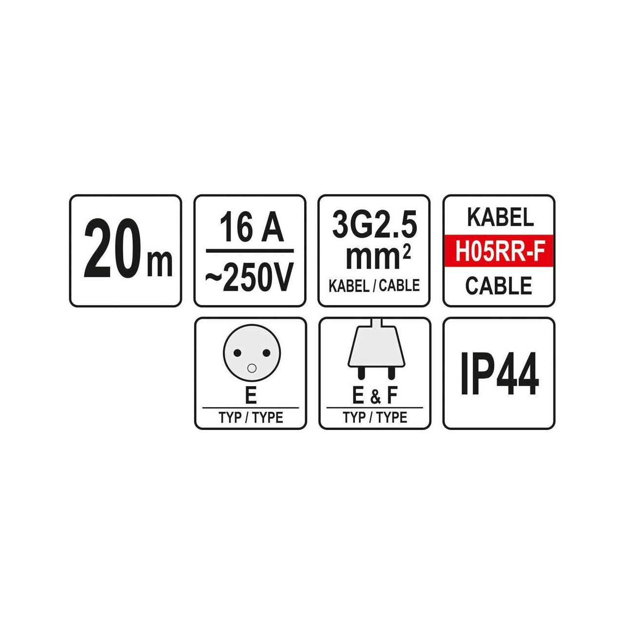 Prelungitor 20m, 16a Yato YT-8100 - Informații despre acest produs: