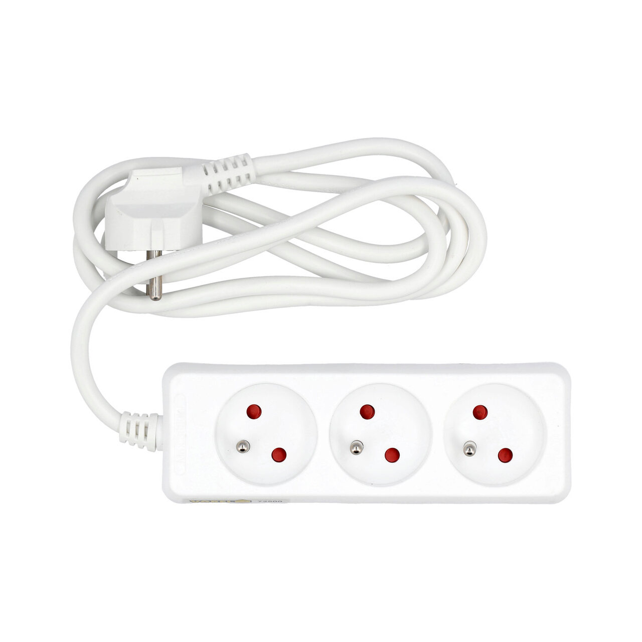 Prelungitor 3 prize, cu impamantare. Carcasă cu din plastic. Lungime 1,5 m. Culoare albă. Cablu H05VV-F 2G 1.00mm2, 10A