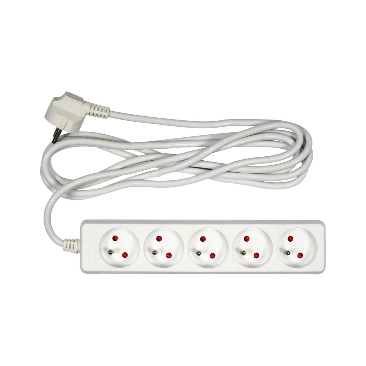Prelungitor 5 prize, cu impamantare. Carcasă cu din plastic. Lungime 3 m. Culoare albă.