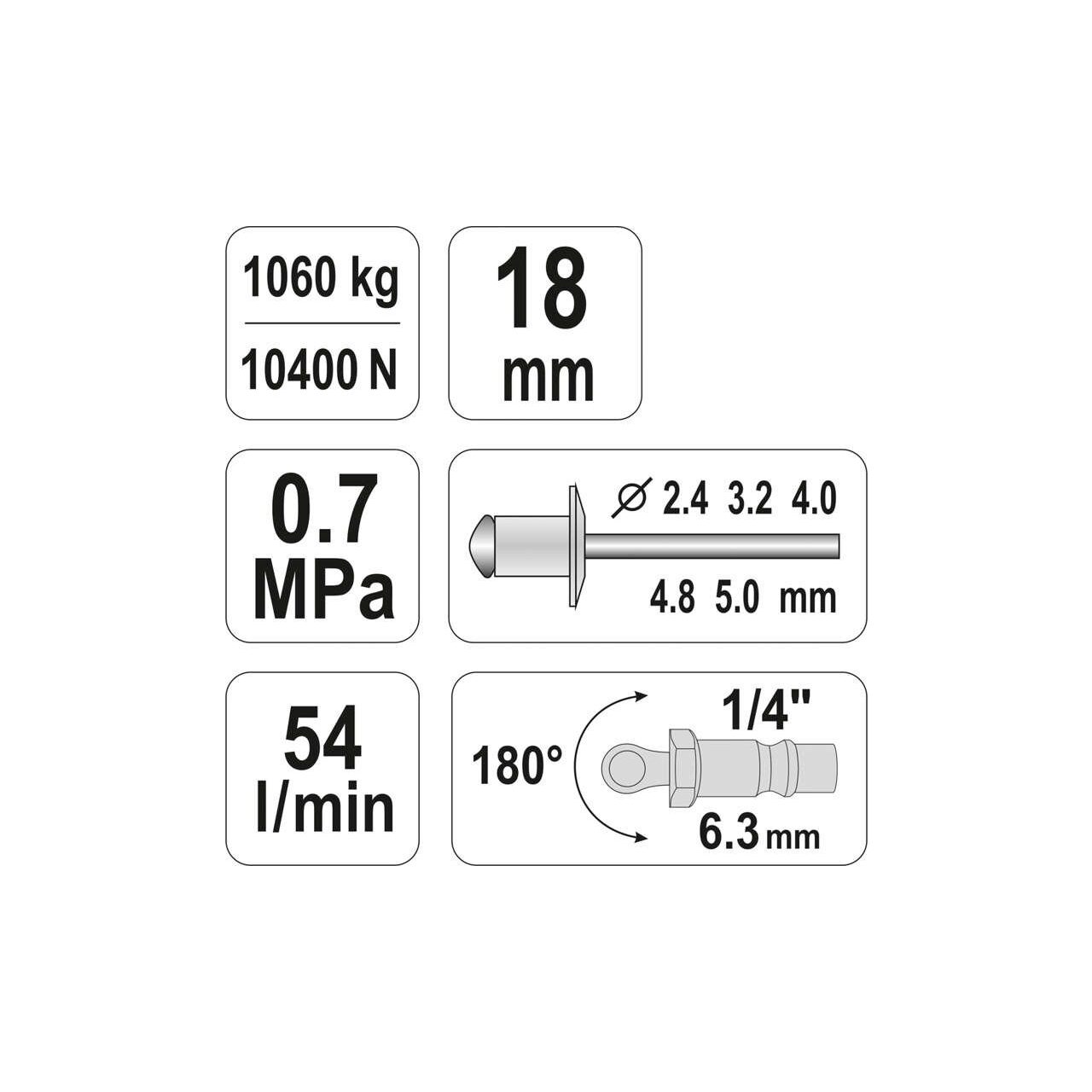 Presa pneumatica de nituit 2.4 - 5 mm Yato YT-36171 - Informații despre acest produs: