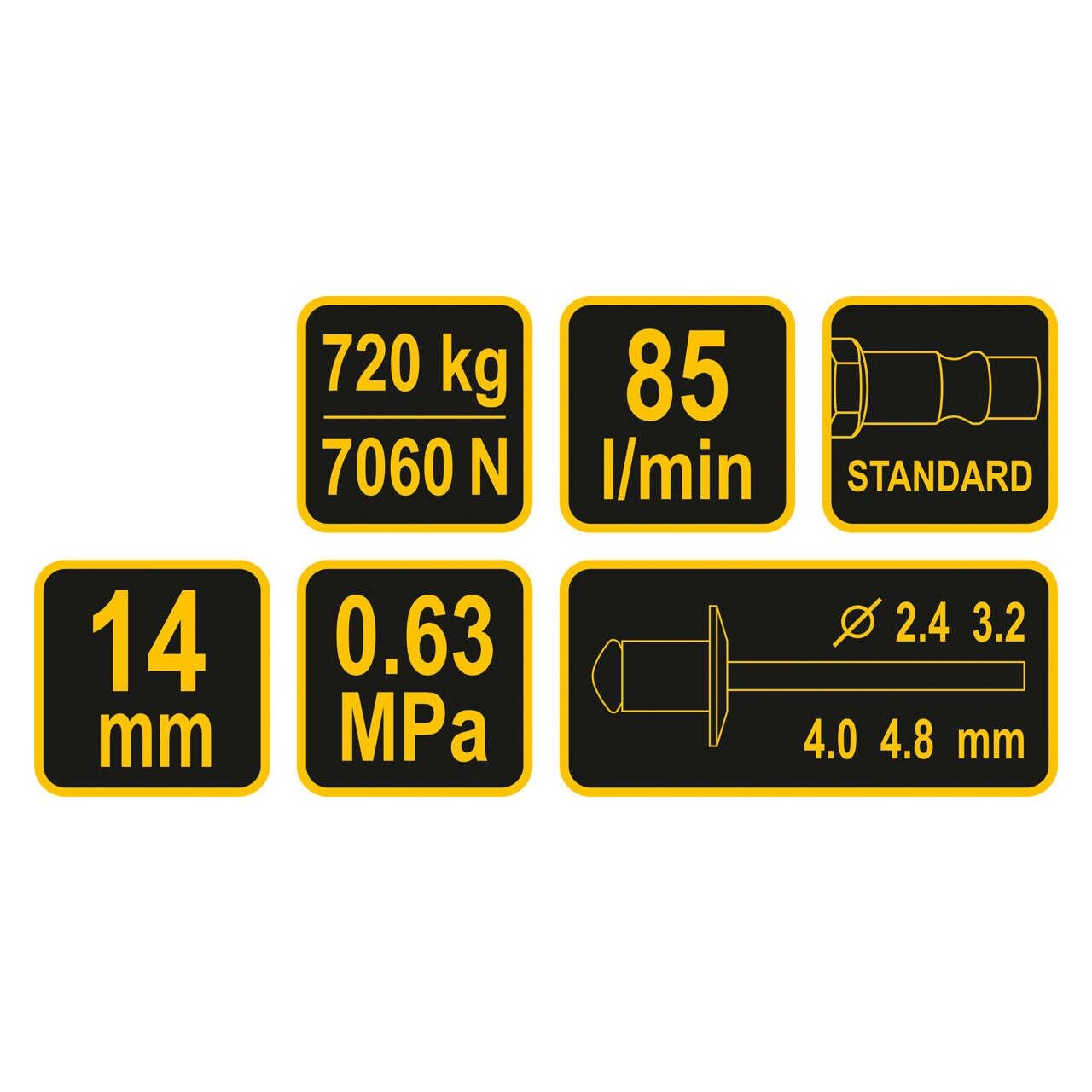Presa pneumatica nituit 2.4, 3.2, 4.8mm Vorel 70280