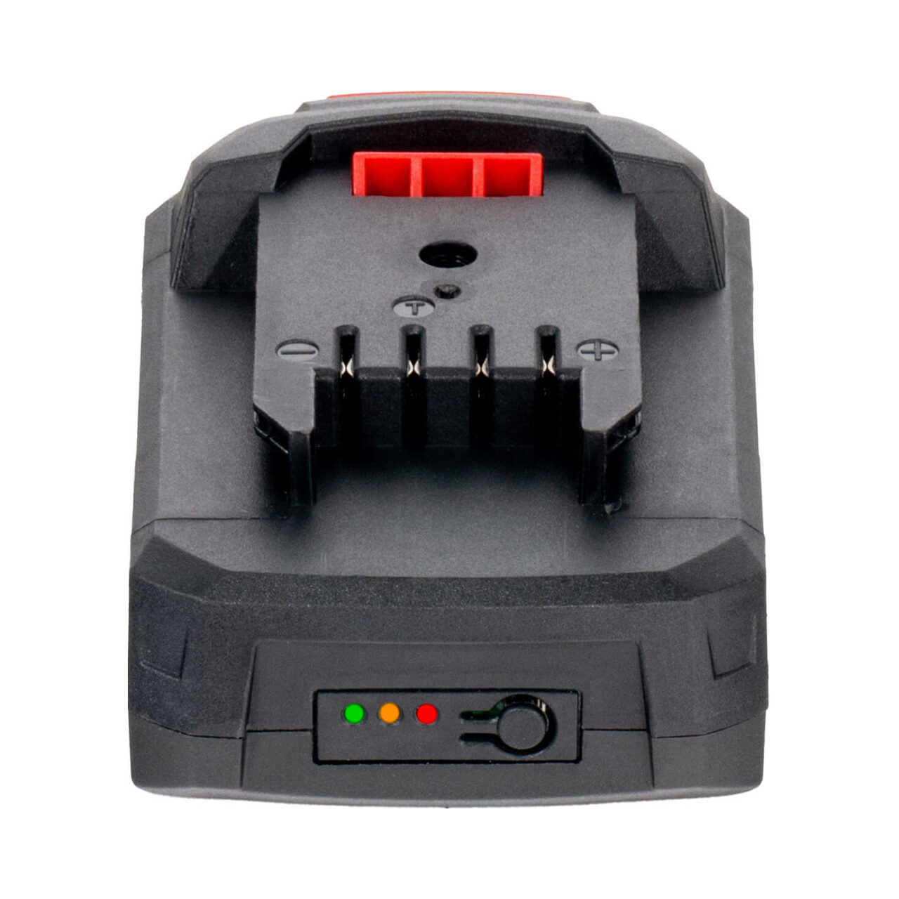 - Setul are doi acumulatori cu o capacitate de 2 Ah si 4 Ah, precum si un incarcator potrivit pentru acestea