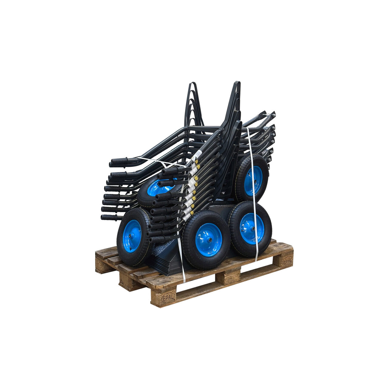 Roabe cu construcție durabilă și cuvă sudată. ATENȚIE!!! Roabele sunt ambalate în 10 bucăți pe palet / aceasta este cantitatea minimă de comandă. Roabele se asamblează singure și vin în 3 părți separate (bol, roată, cadru).