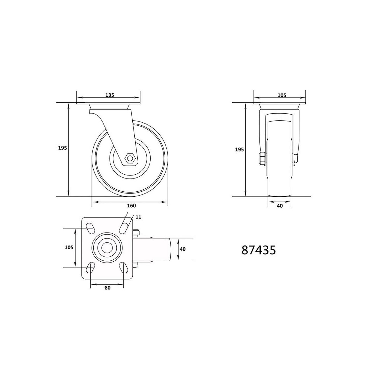 Roată rotativă din poliamidă de 160 mm Vorel 87435 - Informații despre acest produs: