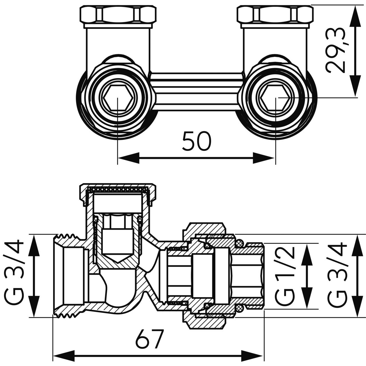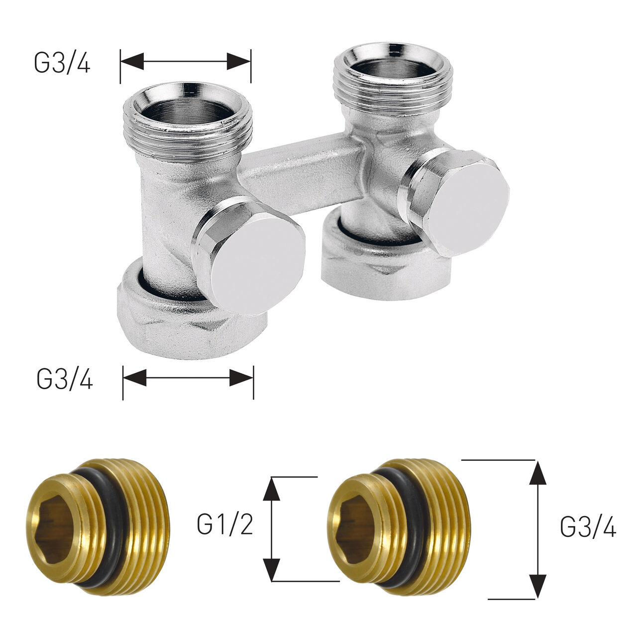 Robinet dublu din alama pentru radiatoare 3/4" FI-FE cu racorduri din pardoseala, Ferro LZ06YK - Informații despre acest produs: