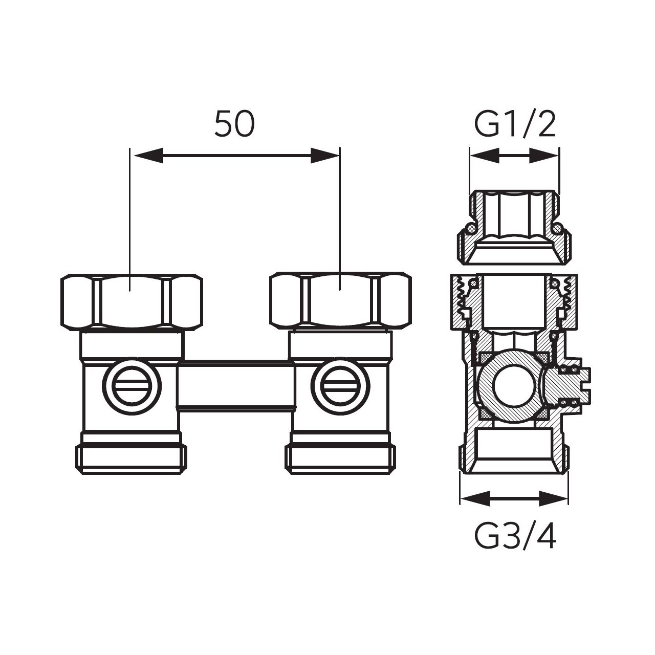 Robinet dublu din alama pentru radiatoare 3/4" FI-FE cu racorduri din pardoseala, Ferro LZ06YKN - Informații despre acest produs: