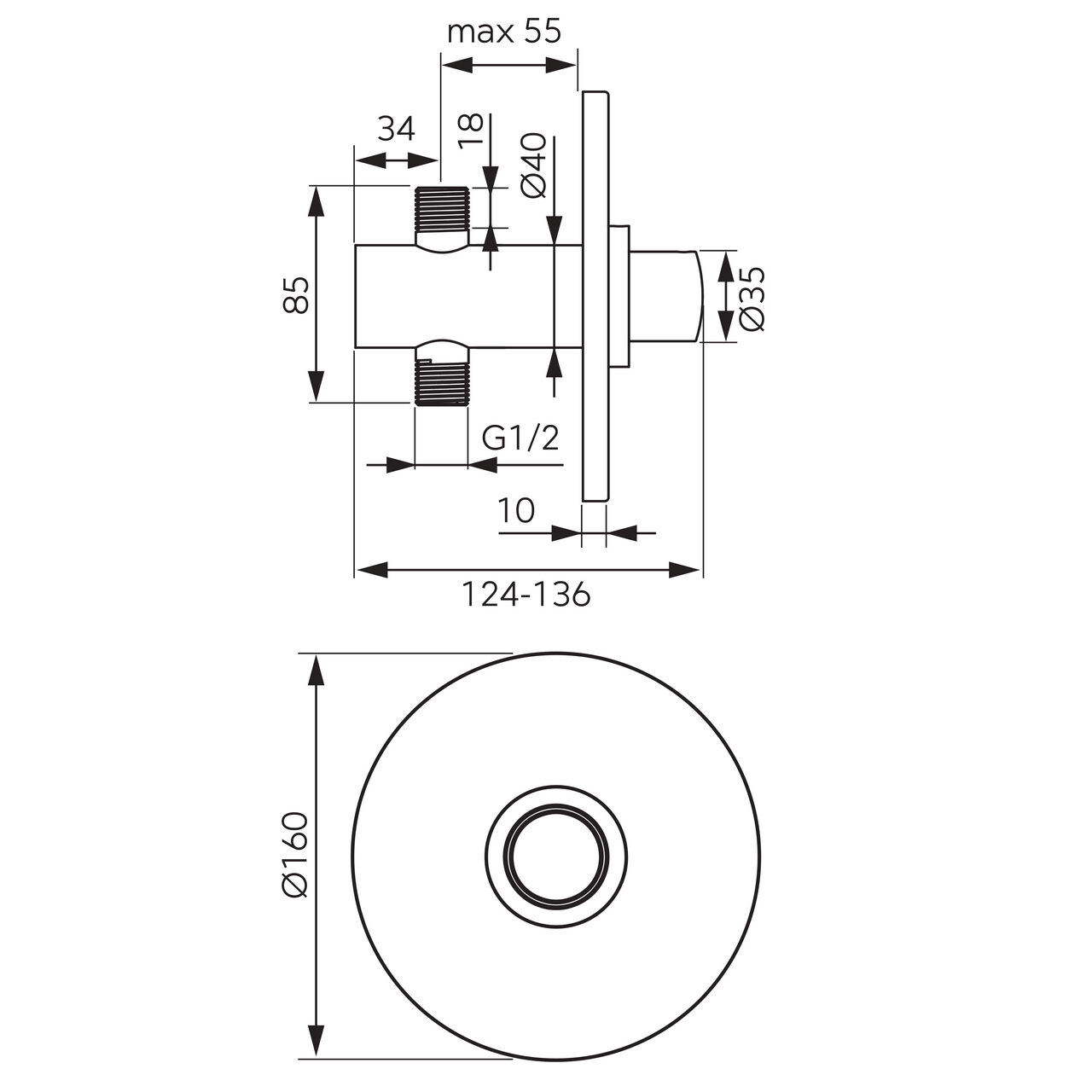 - Racordare la sistemul de apă: 2 x G1/2 FE