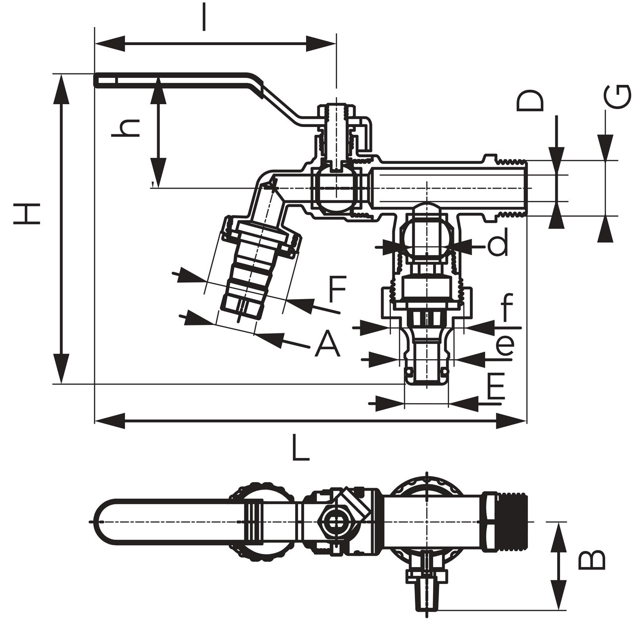 Robinet scurgere 1/2" din alama cu 2 iesiri si rac. rapid , Ferro KCD1 - Informații despre acest produs: