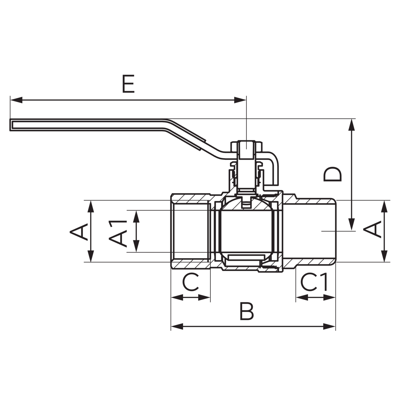 Are racord combinat 1" FE-FI, adică un capăt cu filet exterior și un capăt cu filet interior, pentru cuplare la elemente filetate compatibile de 1".