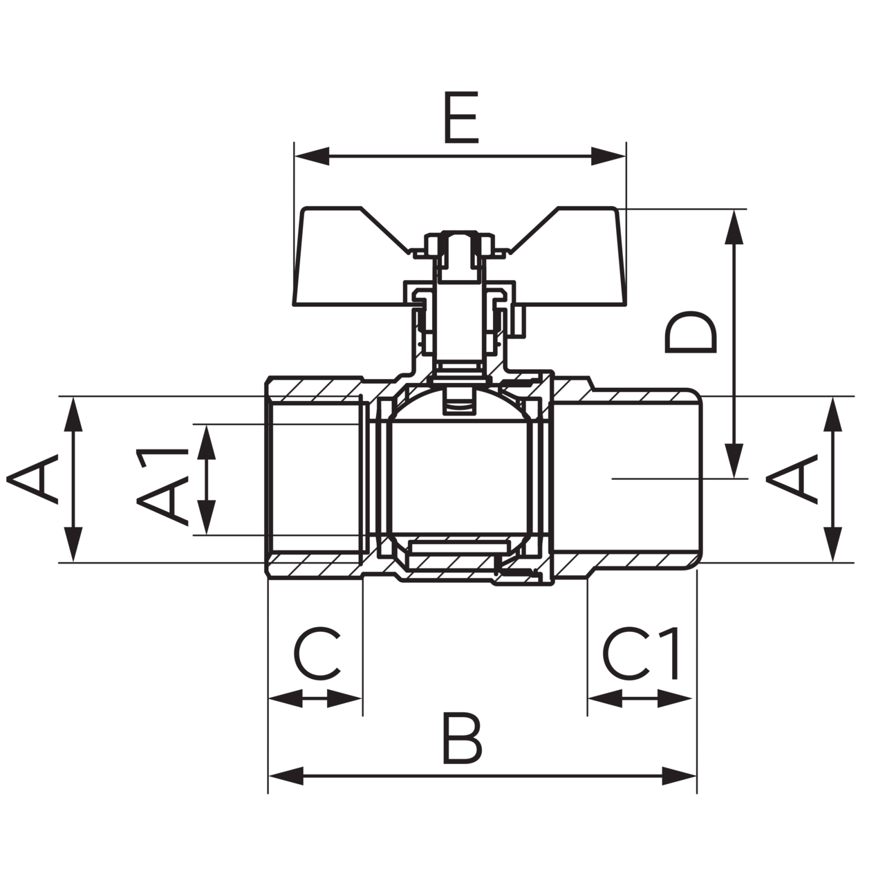 Gândit pentru control precis în circuite cu mediu de lucru gaz, acest model oferă conectare 3/4" FI-FE și manevrare sigură prin suport tip fluture. Corpul și bila din alamă lucrează cu etanșare din PTFE și O-ring NBR71 pe ax pentru o închidere fermă. Prezența presetuprei contribuie la limitarea pierderilor la tija de acționare, iar construcția fără nichel pe componentele de contact este utilă în aplicații unde acest aspect este necesar. Formatul compact, alături de acționarea cu fluture pentru acces în spații înguste, facilitează montajul în cutii sau dulapuri tehnice, fără piese suplimentare. Parametrii de funcționare includ presiune nominală MOP5 (5 bar) și interval termic T2, între -20 și 60 °C, adecvat pentru majoritatea condițiilor ambientale obișnuite din instalațiile de gaz. Robinetul nu are secțiune de trecere totală, aspect ce trebuie luat în calcul la dimensionarea debitului. Nu include aerisitor și nici filtru încorporat, ceea ce simplifică traseul și reduce numărul de elemente de întreținere. Lipsa unei duze de scurgere și a unui coș de aspirație menține o arhitectură internă simplă, orientată către izolare rapidă a traseului de gaz atunci când este necesar. Conectica 3/4" FI-FE permite integrarea în noduri standardizate, cu montare directă pe fittinguri compatibile. Carcasa din alamă și sfera din același material oferă rigiditate structurală pentru utilizare curentă, iar etanșările pe ax din PTFE și NBR71 susțin stabilitatea în timp. Nu este destinat țevilor multistrat și nu este livrat cu rozetă, permițând configurarea liberă a finisajelor la fața locului. Absența componentelor auxiliare interne reduce rezistența la întreținere, iar acționarea tip fluture contribuie la o utilizare intuitivă în spații reduse, cu vizibilitate clară a poziției deschis/închis.