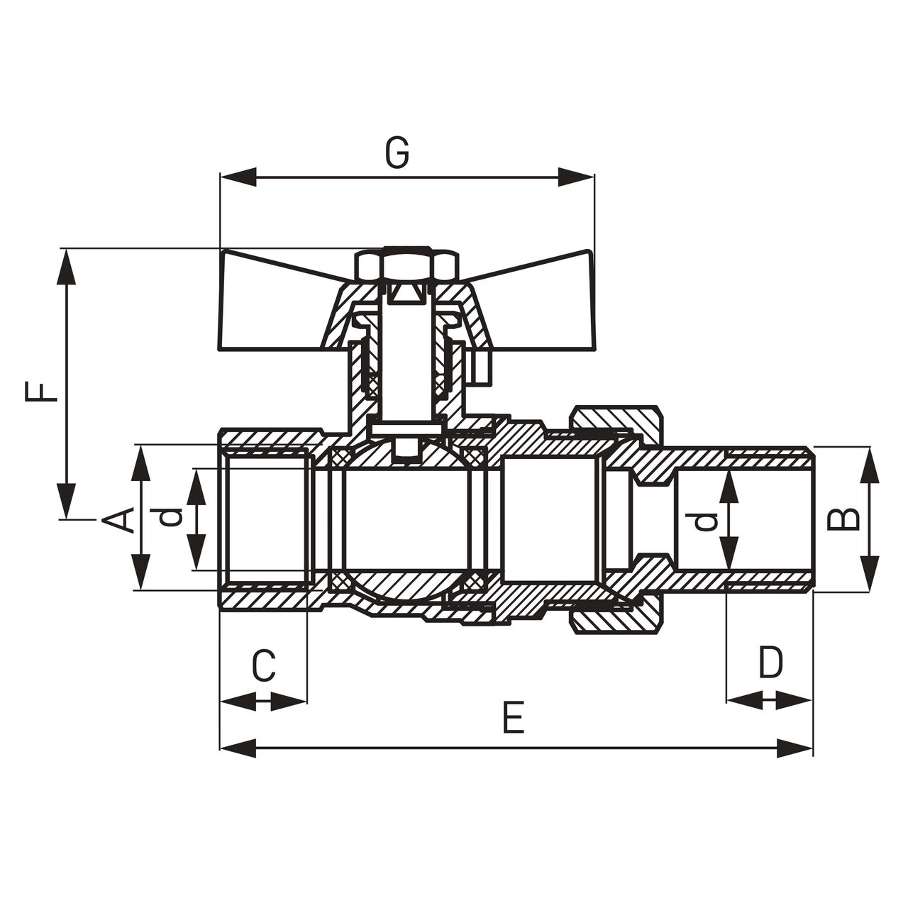 Robinet trecere cu olandez din alama PN40, 3/4" FI-FE cu sfera si fluture , Ferro KSH2 - Informații despre acest produs: