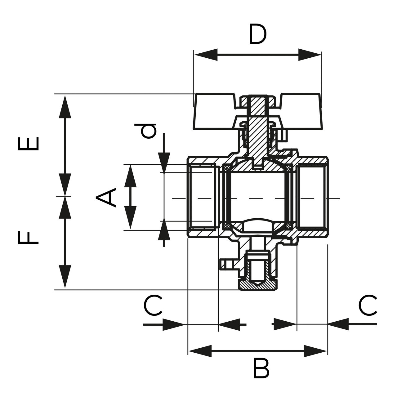 Robinet trecere cu rac. M10X1, PN16, 3/4" FI-FI, F-Power, Ferro KFPMT2 - Informații despre acest produs: