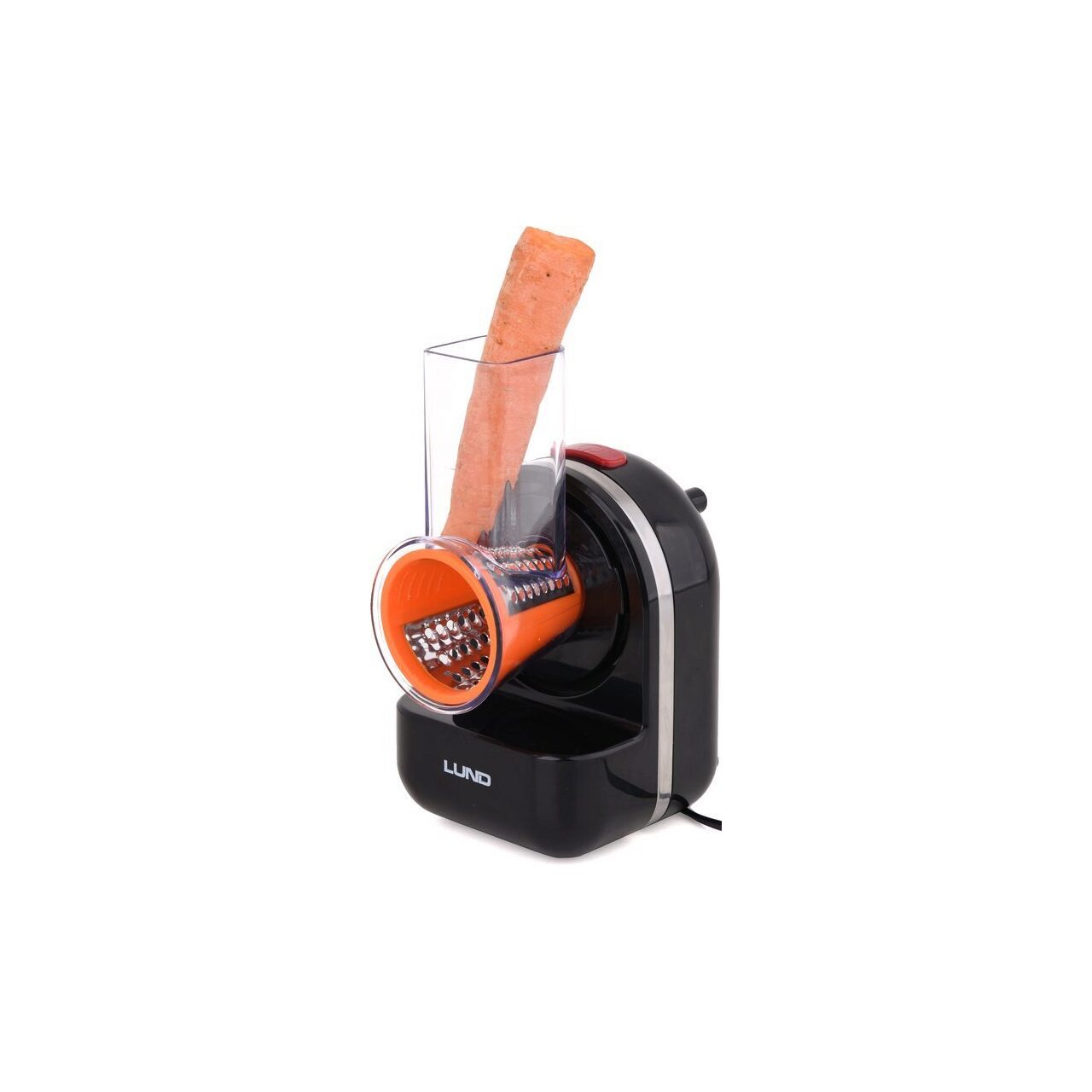 SLICER - un tocator cu o admisie si un impingator. Setul include până la 5 răzătoare diferite. Vârfurile sunt foarte ușor de înlocuit și pot fi spălate și în mașina de spălat vase.