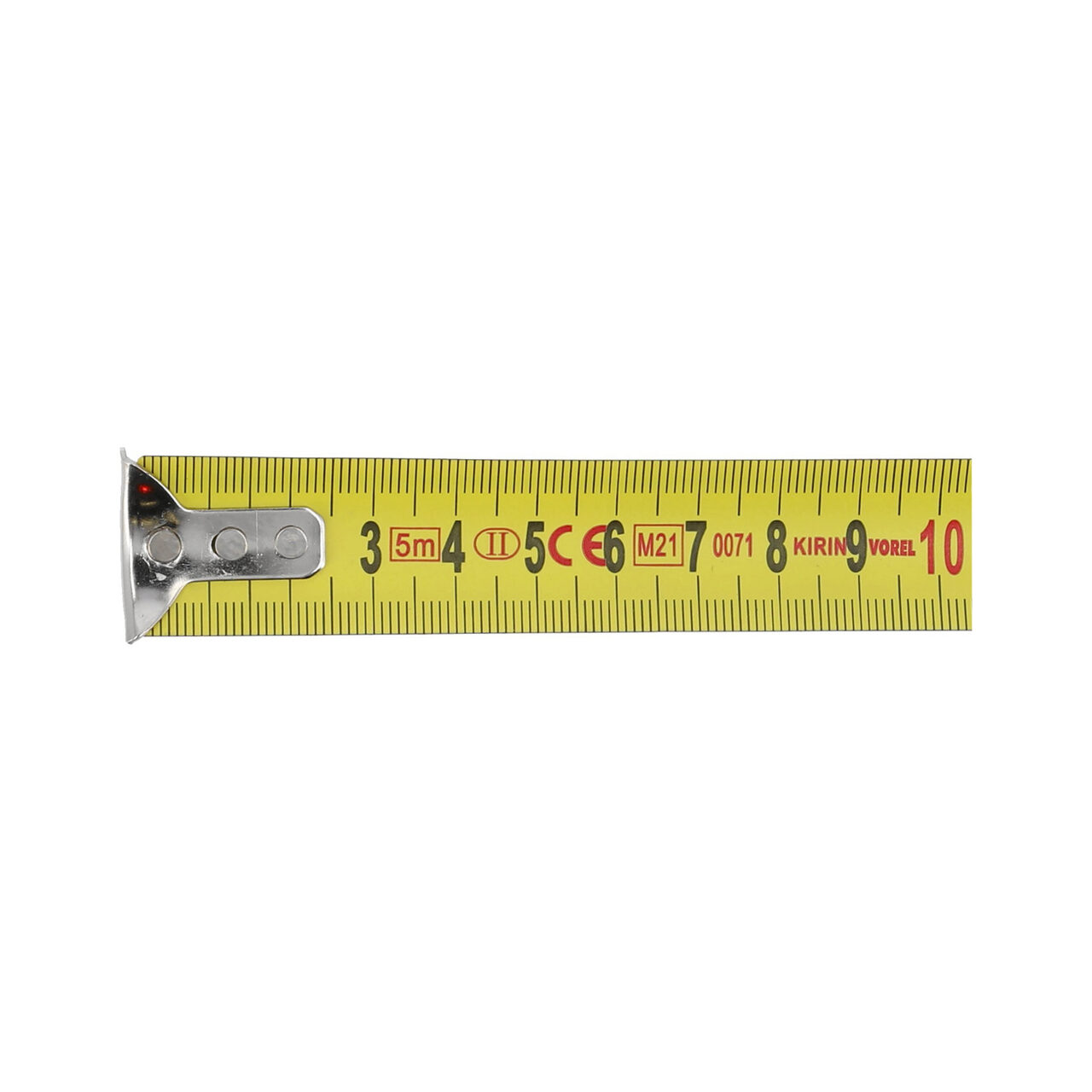 Ruletă de oțel laminată cu măsurarea 5 m x 25 mm, fabricată în clasa a II-a de precizie. Măsurătorul este echipat cu două încuietori : una fixă cu cheie glisantă și una rapidă cu buton la baza măsurătorului.