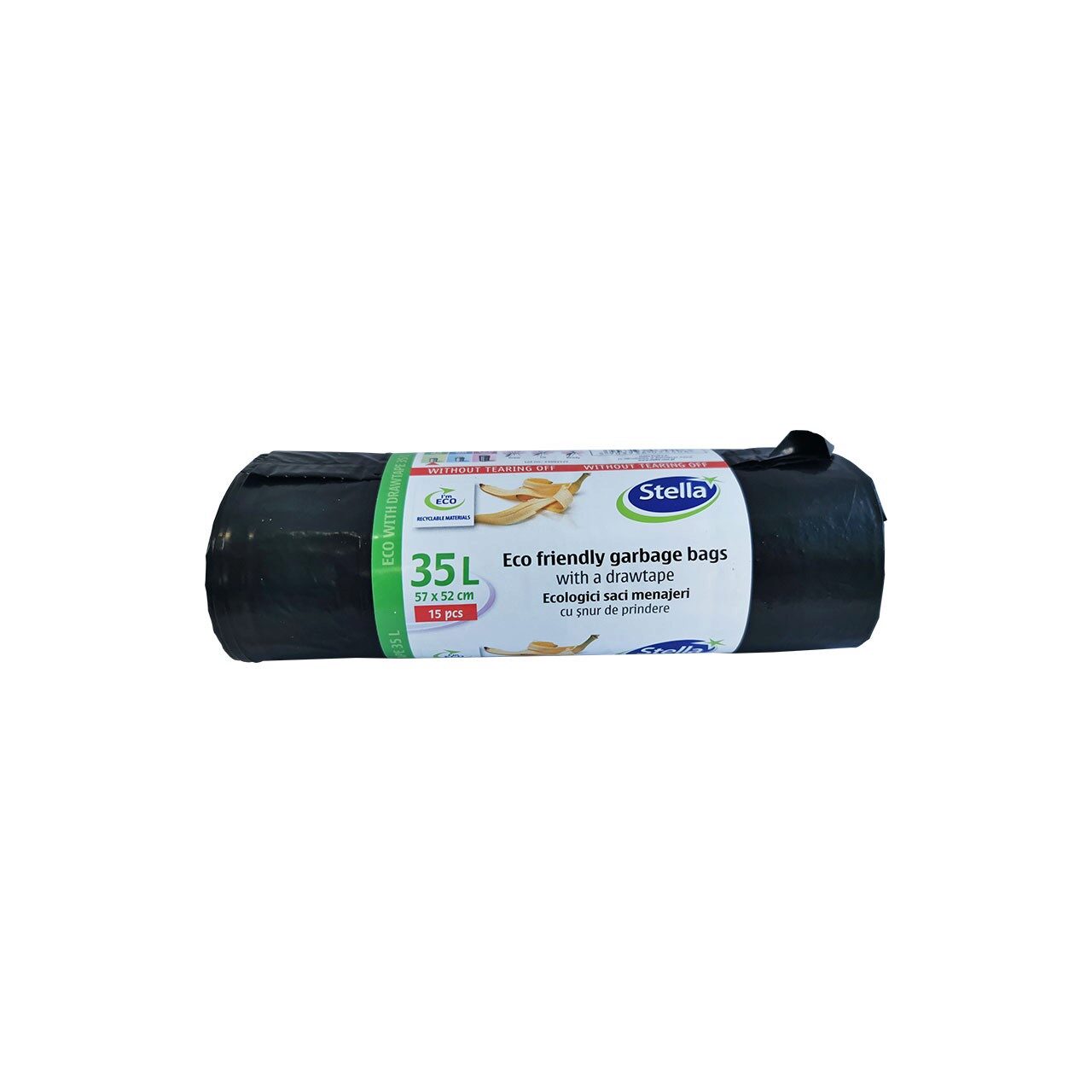 Sac menajer LDPE ecologic cu snur pentru inchidere, 35 l, 15 buc