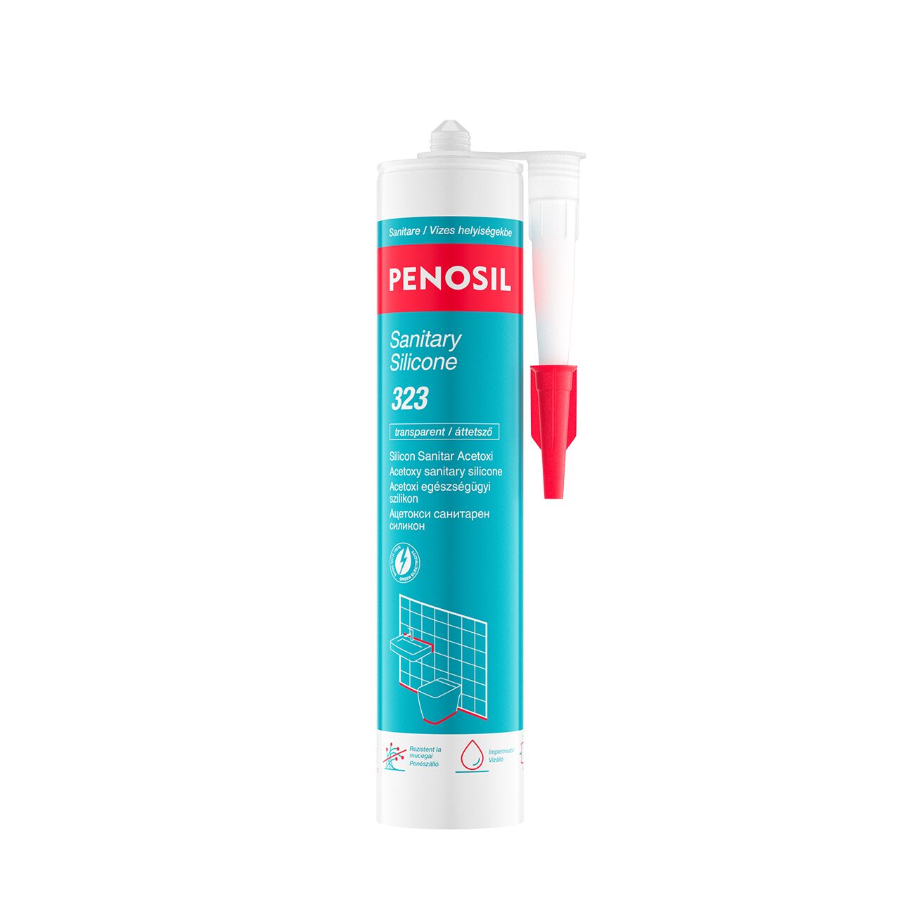 PENOSIL Sanitary Silicone 323 / 323c este un etanșant siliconic sanitar acetoxi pentru diverse lucrări de etanșare și umplere în spații sanitare. Formează o garnitură de cauciuc siliconic flexibil impermeabil.