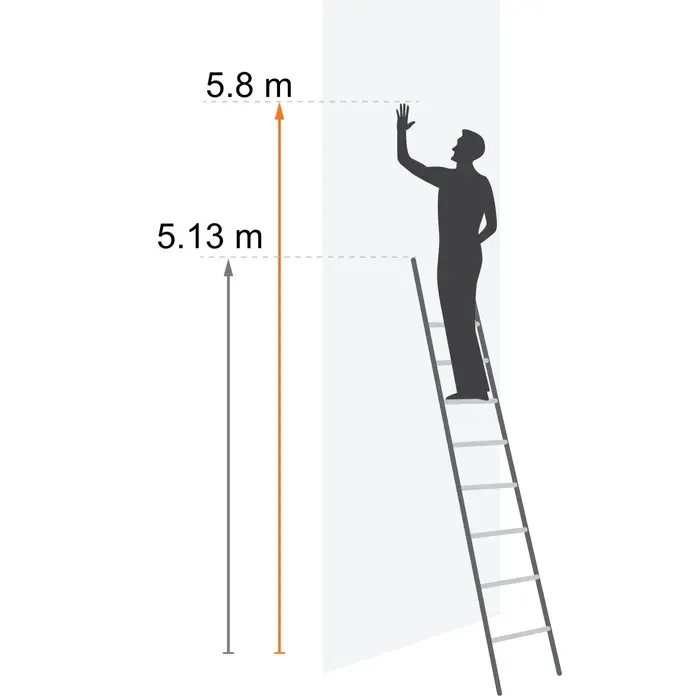 Portanta maxima admisa este de 150 kg, la o inclinare nominala de 70-75º, iar greutatea proprie a scarii este de 10.6 kg. Inaltimea tronsonului de scara este de 3.15 metri, inaltimea scarii extinse este de 5.13 metri, iar inaltimea maxima de lucru (H*) este de 5.80 metri.