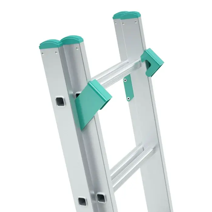 La partea de mijloc a scarii se regasesc doua chingi confectionate din poliester, pentru protectie. In plus, tronsoanele au montate pe partea exterioara opritoare de inaltime, care nu permit culisarea scarii decat pana la inaltimea maxima permisa. Elementele de ghidare sunt realizate din otel de inalta calitate, care permit culisarea scarii cu usurinta.