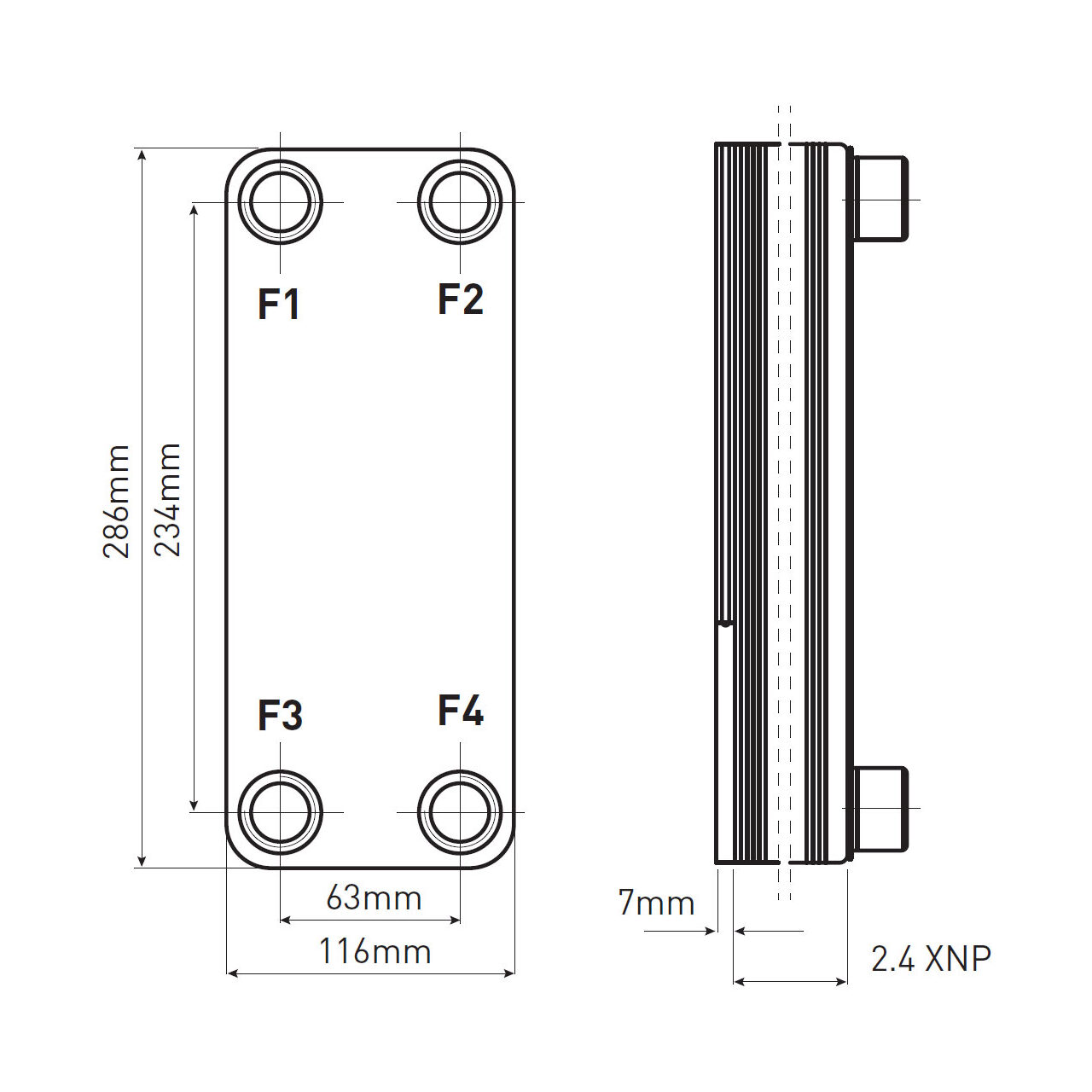 Schimbator de caldura fara izolatie cu 30 placi 30-45 kW, racord 1", Ferro IC9THX30